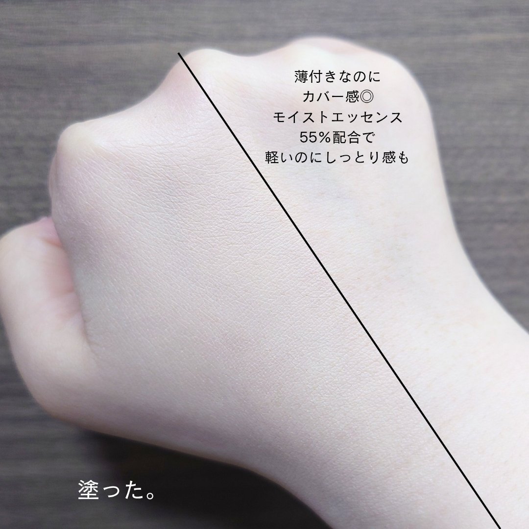 薄膜で、軽い使用感❣️ 塗布してる時はみずみずしいのに 馴染むとピタッと密着するような使用感🫶🏻 4種類の異なるパウダー配合で 薄く均一にカバーしてくれるそう◎ カバー感あるのに、重くないからお気に入り⭐ 汗に強いアクティビティプルーフ🫧 水をしっかり弾くから、今からの時期に良さそうです!! ハートの可愛いパフは使いやすい♡