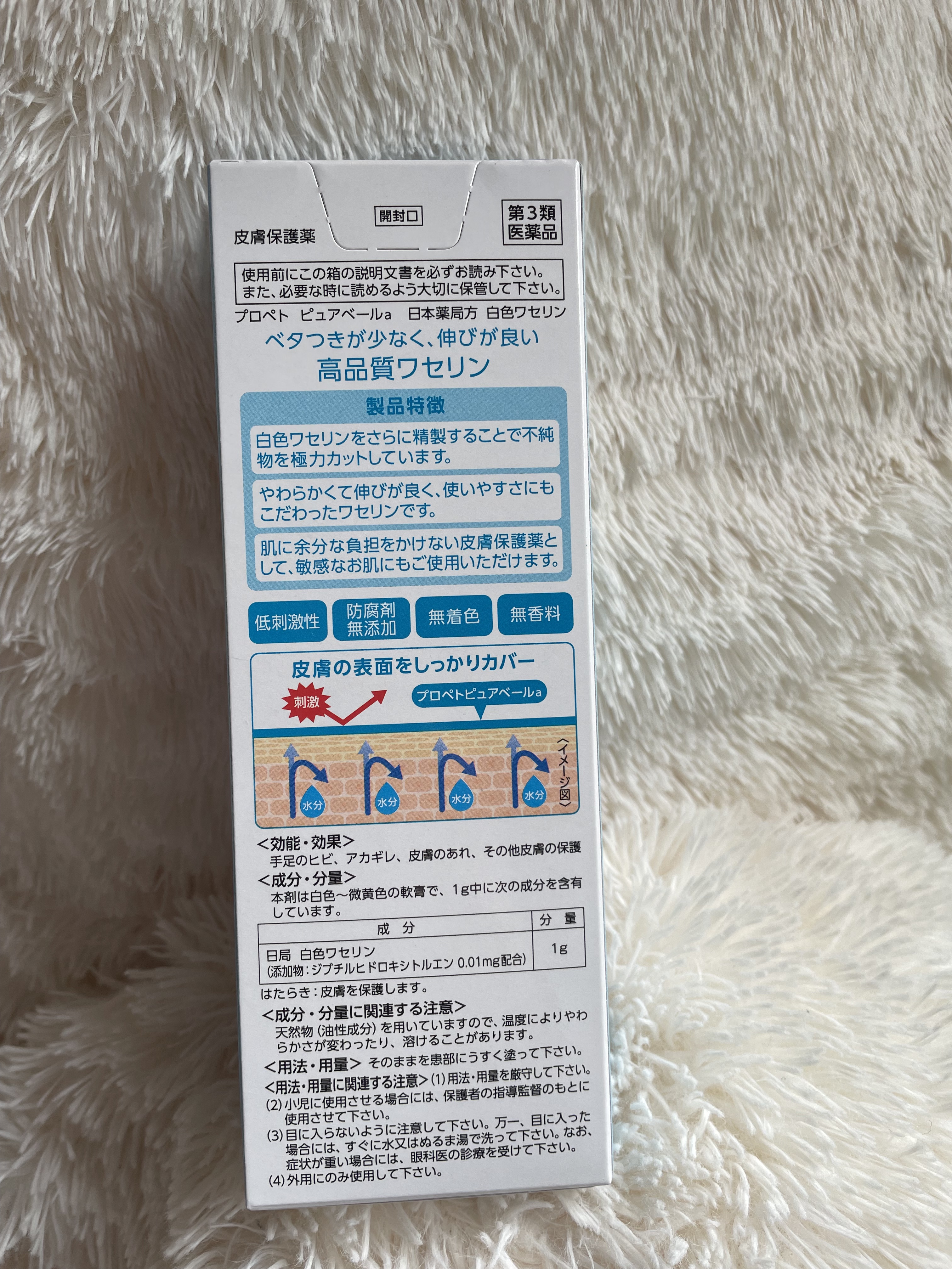 わたしは【プロペト】を使ってワセリンの概念が変わりました✨ 手にとって肌に伸ばした途端、水のようにサラサラになってとても伸びがいいんです…😳 ワセリン自体には水分を与える働きははないので、化粧水や美容液などの後に蓋をする役割として使いましょう😌 赤ちゃんでも使えて、肌が弱い人やアトピー肌の人はプロペト以上の純度のものを推奨されている。