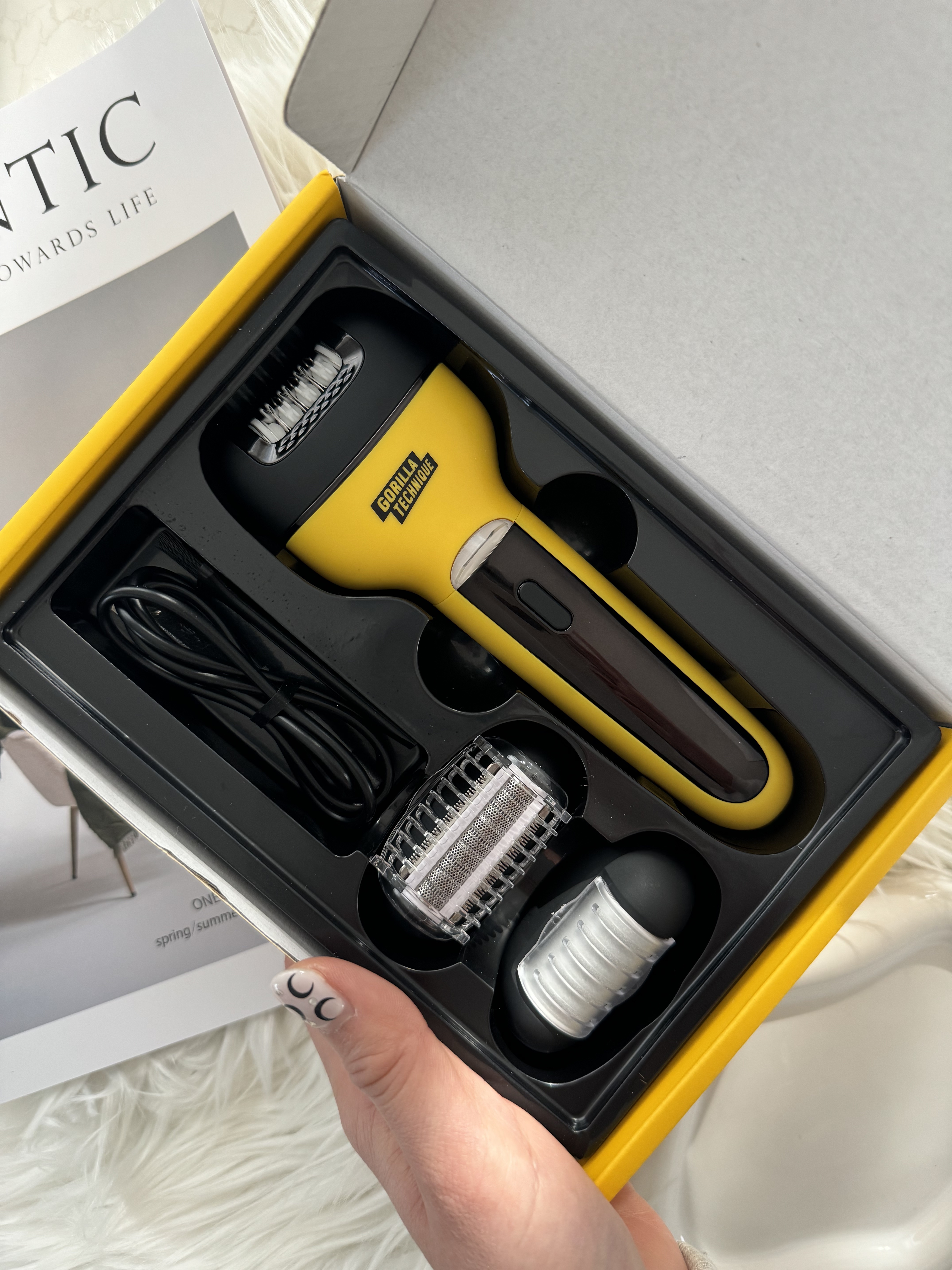 自宅で簡単に脱毛しましょう✨ 3種類のヘッドで毛根の除去、シェービング、角質ケアが可能です。 毛根からしっかり抜くことで太い毛がなくなり、脱毛のサイクルが長くなるんです!