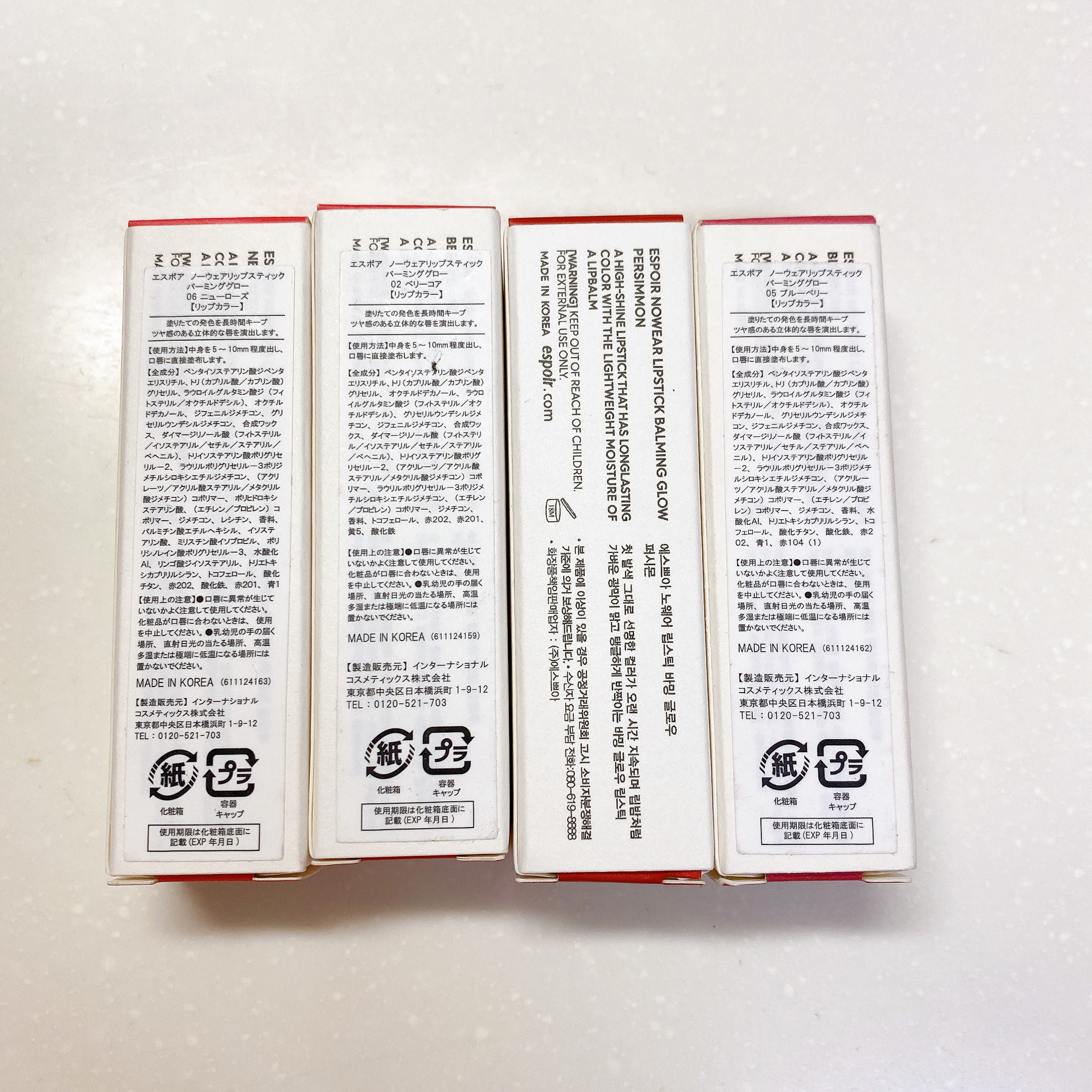 - <01 ヴィヴィディ(Vividy)【EC展開カラー】> ペンタイソステアリン酸ジペンタエリスリチル、トリ(カプリル酸/カプリン酸)グリセリル、ラウロイルグルタミン酸ジ(フィトステリル/オクチルドデシル)、オクチルドデカノール、グリセリルウンデシルジメチコン、ジフェニルジメチコン、合成ワックス、ダイマージリノール酸(フィトステリル/イソステアリル/セチル/ステアリル/ベヘニル)、トリイソステアリン酸ポリグリセリル-2、(アクリレーツ/アクリル酸ステアリル/メタクリル酸ジメチコン)コポリマー、ラウリルポリグリセリル-3ポリジメチルシロキシエチルジメチコン、(エチレン/プロピレン)コポリマー、ジメチコン、ポリヒドロキシステアリン酸、香料、レシチン、パルミチン酸エチルヘキシル、イソステアリン酸、ミリスチン酸イソプロピル、ポリリシノレイン酸ポリグリセリル-3、水酸化Al、トリエトキシカプリリルシラン、トコフェロール、赤226、黄5、赤104(1)、酸化チタン、赤201 <02 ベリーコア(Berry Core)> ペンタイソステアリン酸ジペンタエリスリチル、トリ(カプリル酸/カプリン酸)グリセリル、オクチルドデカノール、ラウロイルグルタミン酸ジ(フィトステリル/オクチルドデシル)、グリセリルウンデシルジメチコン、ジフェニルジメチコン、合成ワックス、ダイマージリノール酸(フィトステリル/イソステアリル/セチル/ステアリル/ベヘニル)、トリイソステアリン酸ポリグリセリル-2、(アクリレーツ/アクリル酸ステアリル/メタクリル酸ジメチコン)コポリマー、ラウリルポリグリセリル-3ポリジメチルシロキシエチルジメチコン、(エチレン/プロピレン)コポリマー、ジメチコン、香料、トコフェロール、赤202、赤201、黄5、酸化鉄 <03 クランベリー(Cranberry)【EC展開カラー】> ペンタイソステアリン酸ジペンタエリスリチル、オクチルドデカノール、トリ(カプリル酸/カプリン酸)グリセリル、ラウロイルグルタミン酸ジ(フィトステリル/オクチルドデシル)、グリセリルウンデシルジメチコン、ジフェニルジメチコン、合成ワックス、ダイマージリノール酸(フィトステリル/イソステアリル/セチル/ステアリル/ベヘニル)、トリイソステアリン酸ポリグリセリル-2、(アクリレーツ/アクリル酸ステアリル/メタクリル酸ジメチコン)コポリマー、ラウリルポリグリセリル-3ポリジメチルシロキシエチルジメチコン、(エチレン/プロピレン)コポリマー、ジメチコン、香料、リンゴ酸ジイソステアリル、トコフェロール、ポリヒドロキシステアリン酸、レシチン、トリエトキシカプリリルシラン、パルミチン酸エチルヘキシル、イソステアリン酸、ミリスチン酸イソプロピル、ポリリシノレイン酸ポリグリセリル-3、酸化鉄、黄5、赤202、赤230(1) <04 ヘイベスティ(Hey Bestie)【EC展開カラー】> ペンタイソステアリン酸ジペンタエリスリチル、トリ(カプリル酸/カプリン酸)グリセリル、ラウロイルグルタミン酸ジ(フィトステリル/オクチルドデシル)、オクチルドデカノール、ジフェニルジメチコン、グリセリルウンデシルジメチコン、合成ワックス、ダイマージリノール酸(フィトステリル/イソステアリル/セチル/ステアリル/ベヘニル)、トリイソステアリン酸ポリグリセリル-2、ラウリルポリグリセリル-3ポリジメチルシロキシエチルジメチコン、(アクリレーツ/アクリル酸ステアリル/メタクリル酸ジメチコン)コポリマー、ポリヒドロキシステアリン酸、(エチレン/プロピレン)コポリマー、ジメチコン、レシチン、香料、パルミチン酸エチルヘキシル、イソステアリン酸、ミリスチン酸イソプロピル、ポリリシノレイン酸ポリグリセリル-3、水酸化Al、トリエトキシカプリリルシラン、トコフェロール、酸化チタン、赤202、黄5、赤104(1)、酸化鉄、青1 <05 ブルーベリー(Blueberry)> ペンタイソステアリン酸ジペンタエリスリチル、トリ(カプリル酸/カプリン酸)グリセリル、ラウロイルグルタミン酸ジ(フィトステリル/オクチルドデシル)、オクチルドデカノール、グリセリルウンデシルジメチコン、ジフェニルジメチコン、合成ワックス、ダイマージリノール酸(フィトステリル/イソステアリル/セチル/ステアリル/ベヘニル)、トリイソステアリン酸ポリグリセリル-2、ラウリルポリグリセリル-3ポリジメチルシロキシエチルジメチコン、(アクリレーツ/アクリル酸ステアリル/メタクリル酸ジメチコン)コポリマー、(エチレン/プロピレン)コポリマー、ジメチコン、香料、水酸化Al、トリエトキシカプリリルシラン、トコフェロール、酸化チタン、酸化鉄、赤202、青1、赤104(1) <06 ニューローズ(New Rose)> ペンタイソステアリン酸ジペンタエリスリチル、トリ(カプリル酸/カプリン酸)グリセリル、ラウロイルグルタミン酸ジ(フィトステリル/オクチルドデシル)、オクチルドデカノール、ジフェニルジメチコン、グリセリルウンデシルジメチコン、合成ワックス、ダイマージリノール酸(フィトステリル/イソステアリル/セチル/ステアリル/ベヘニル)、トリイソステアリン酸ポリグリ