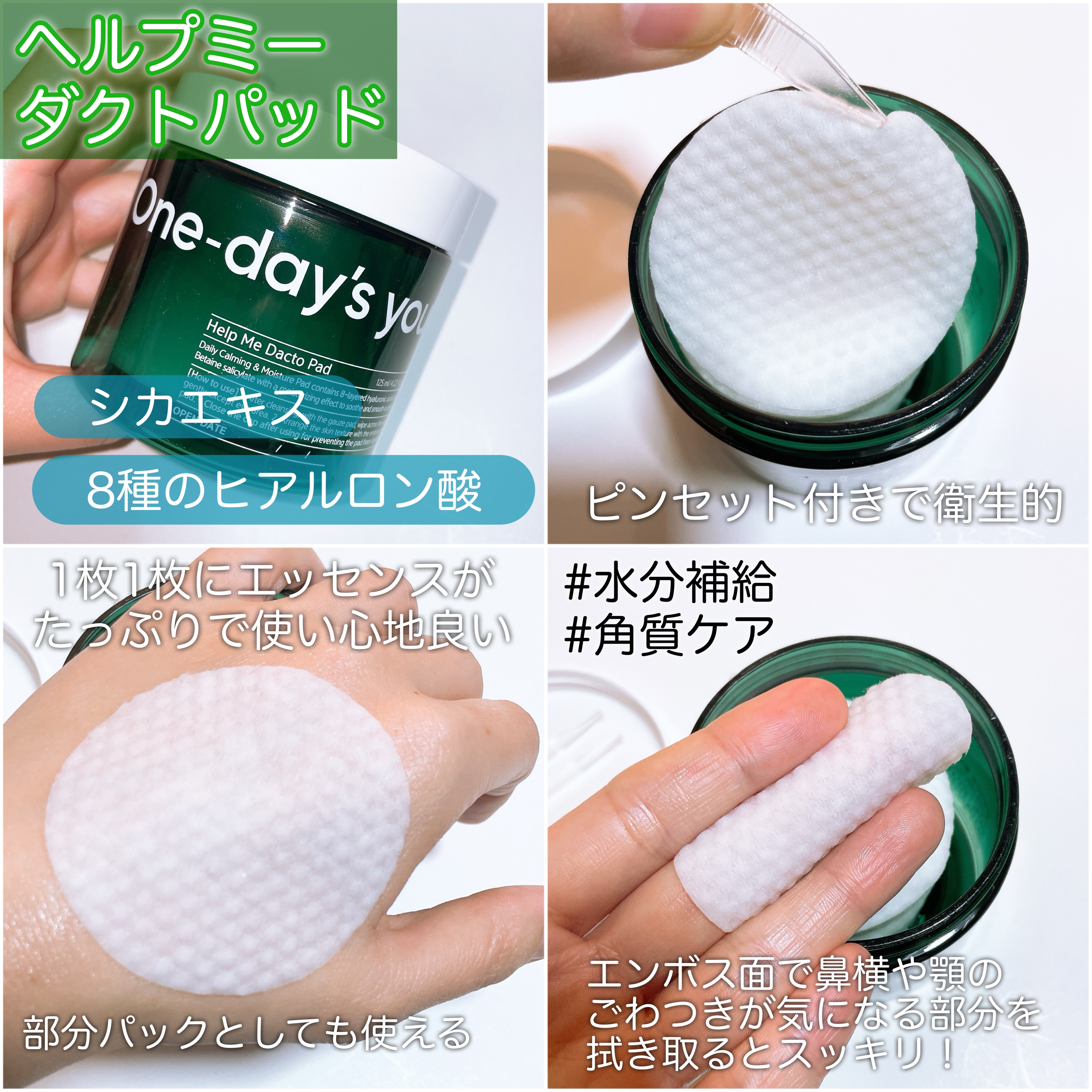 One-day'syouヘルプミー!ダクトパッド最近、肌荒れが気になっているのでOne-day'syouのヘルプミー!ダクトパッドを使い始めました✨やや厚めのパッドなので拭き取りしやすかったです🙆🏻♀️凸凹のエンボス面で拭き取ることで角質・...