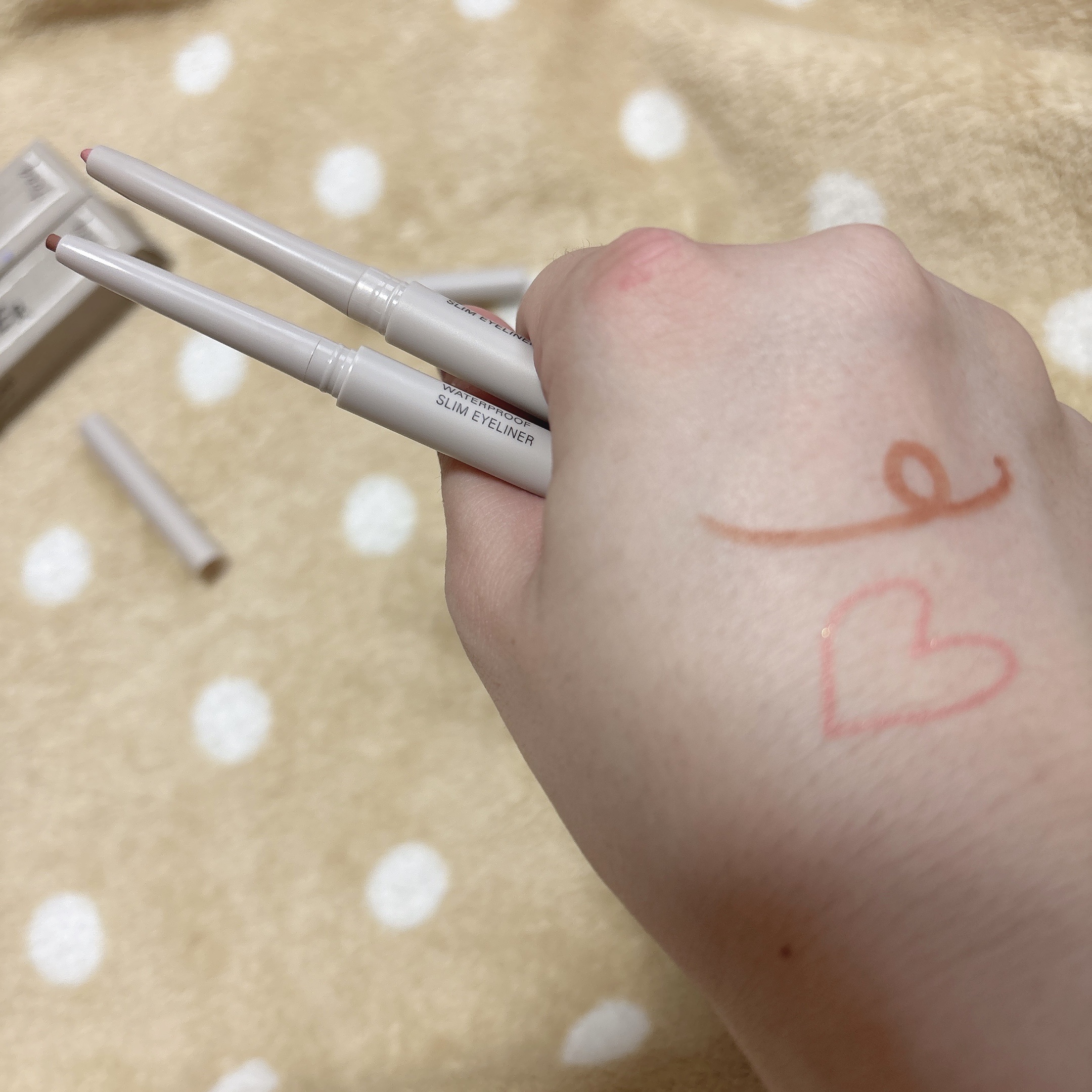 なめらかで描きやすいスリム&クリーミータッチのペンシルアイライナー 独自工法で持続力が高くにじみや落ちの心配がないよう作られているそう 程よいラメ感あるアイライナー、涙袋メイクにも良さそう!ナチュラルなニュアンスながら存在感もある印象 自然な陰影感あるミュートカラー スリムなのに書きやすく、発色も良い感じです
