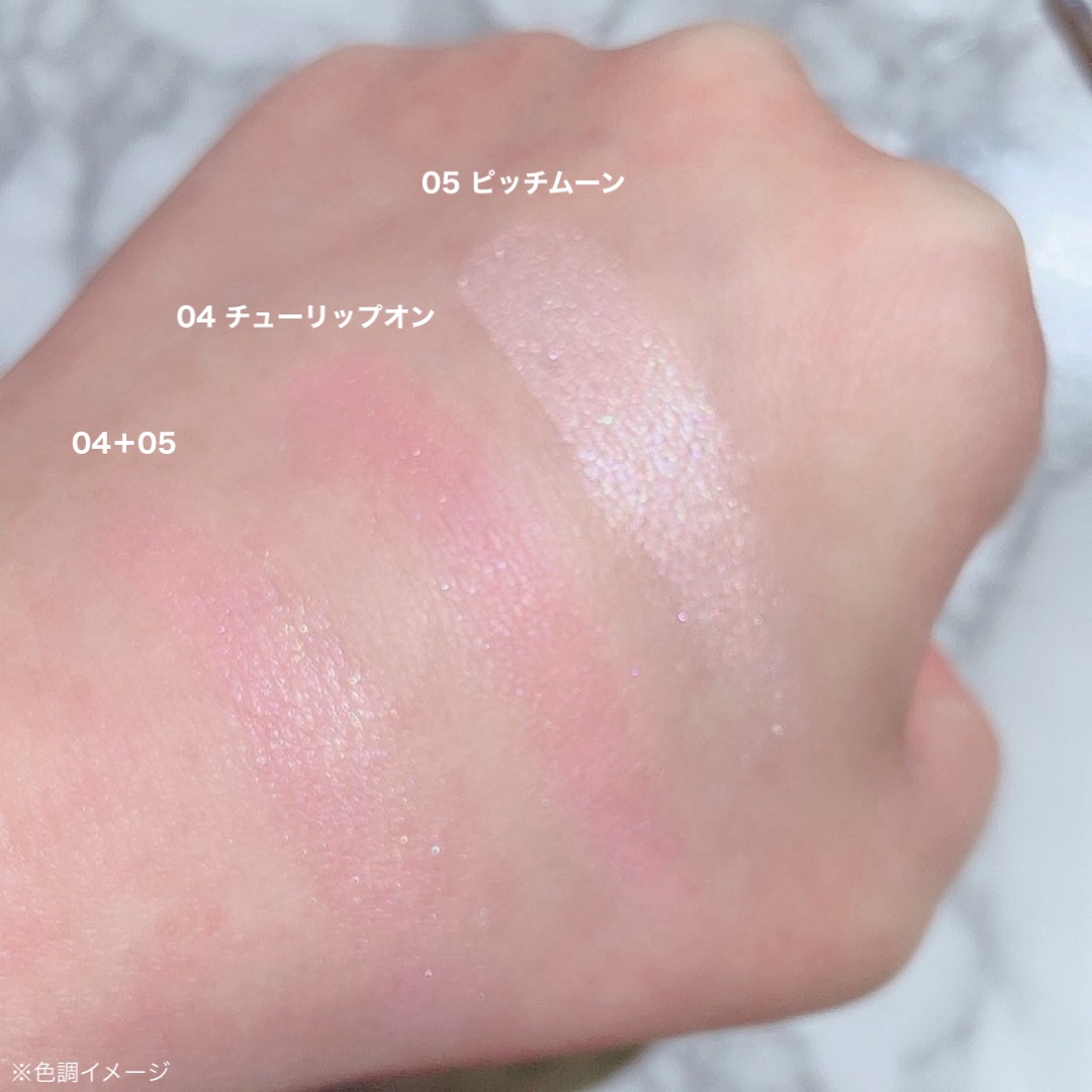 上品なツヤと透明感で彩りをプラス💐 Glintのハイライターとチークで簡単多幸感メイク🎵 微細パール配合でほのかなツヤと立体感を演出💫 幼い花びらで染まるようにはにかんだ頬を演出するミュートロージーピンク🩷 ハイライターとしてだけでなく、チークにもアイシャドウにも使えるマルチアイテムです。