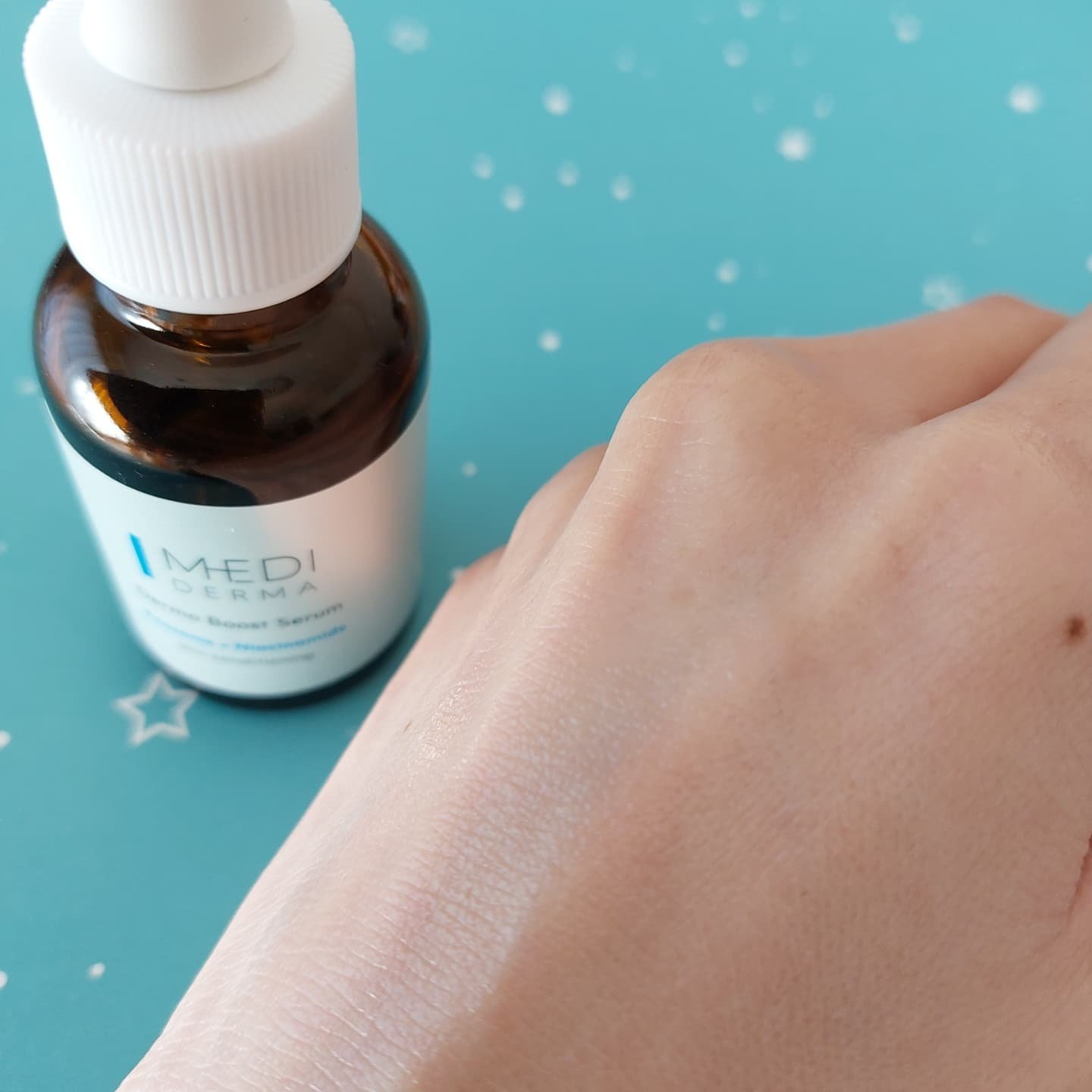 高濃度成分を贅沢に配合(保湿)エクソソーム*2 1%×ナイアシンアミド15%×パンテノール0.5%。 水をコラーゲンエキスに置き換えた濃厚美容液なの😌 スポイトタイプになっていて、取り出してみるととろみのあるテクスチャで、すっとのびてなじませやすいよ〜♡