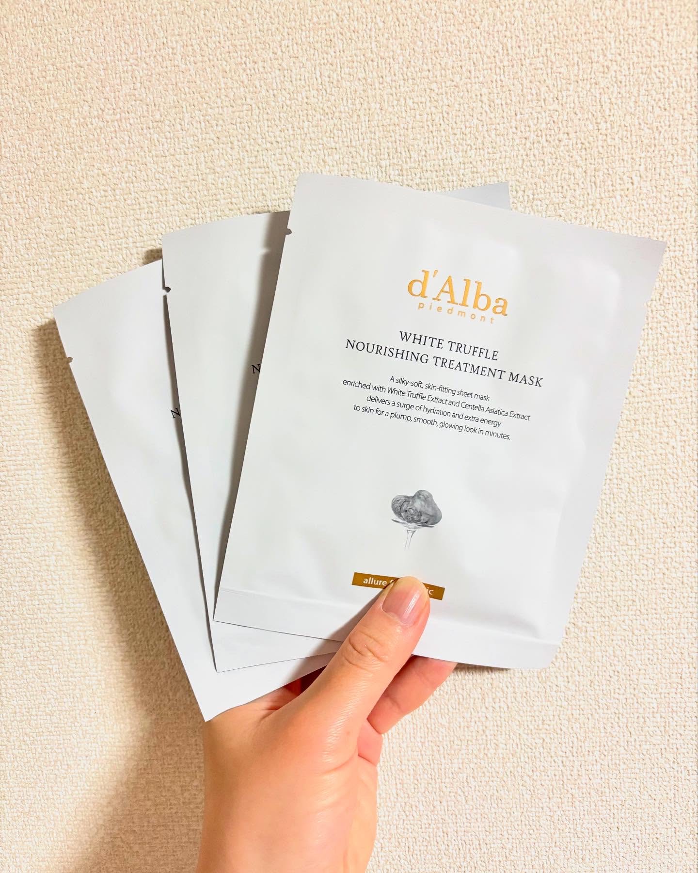 ダルバの2種類のマスクダルバホワイトトリュフナリシングトリートメントマスクインテンシブリフテンションマスクをいただきました!⬛︎ホワイトトリュフナリシングトリートメントマスク上品な香り。液はヒタヒタ。もちっとした素材のシートで肌に密着しやすい...