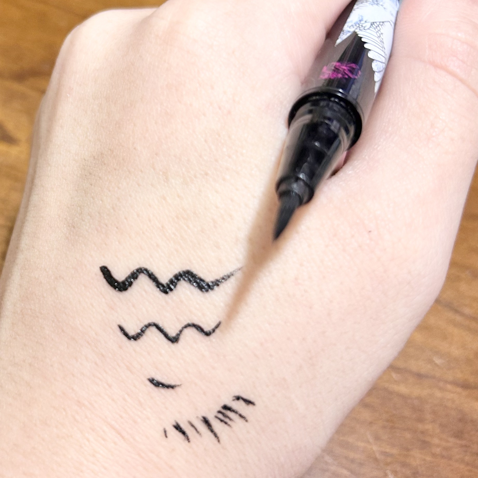 耐久性がとにかく凄い時間停止ライナーꕤ BK-1 漆黒ブラックは、まるで墨汁のような鮮やかな発色が目元を一気に引き締めてくれるので、クールで力強い印象を目指したいときに最適です🖤 汗や水、涙、擦れに強いウォータープルーフ&スマッジプルーフ処方で、まるで時間が止まったかのように色が持続する「タイムレスポリマー」配合のリキッドアイライナーとして設計されています⏰