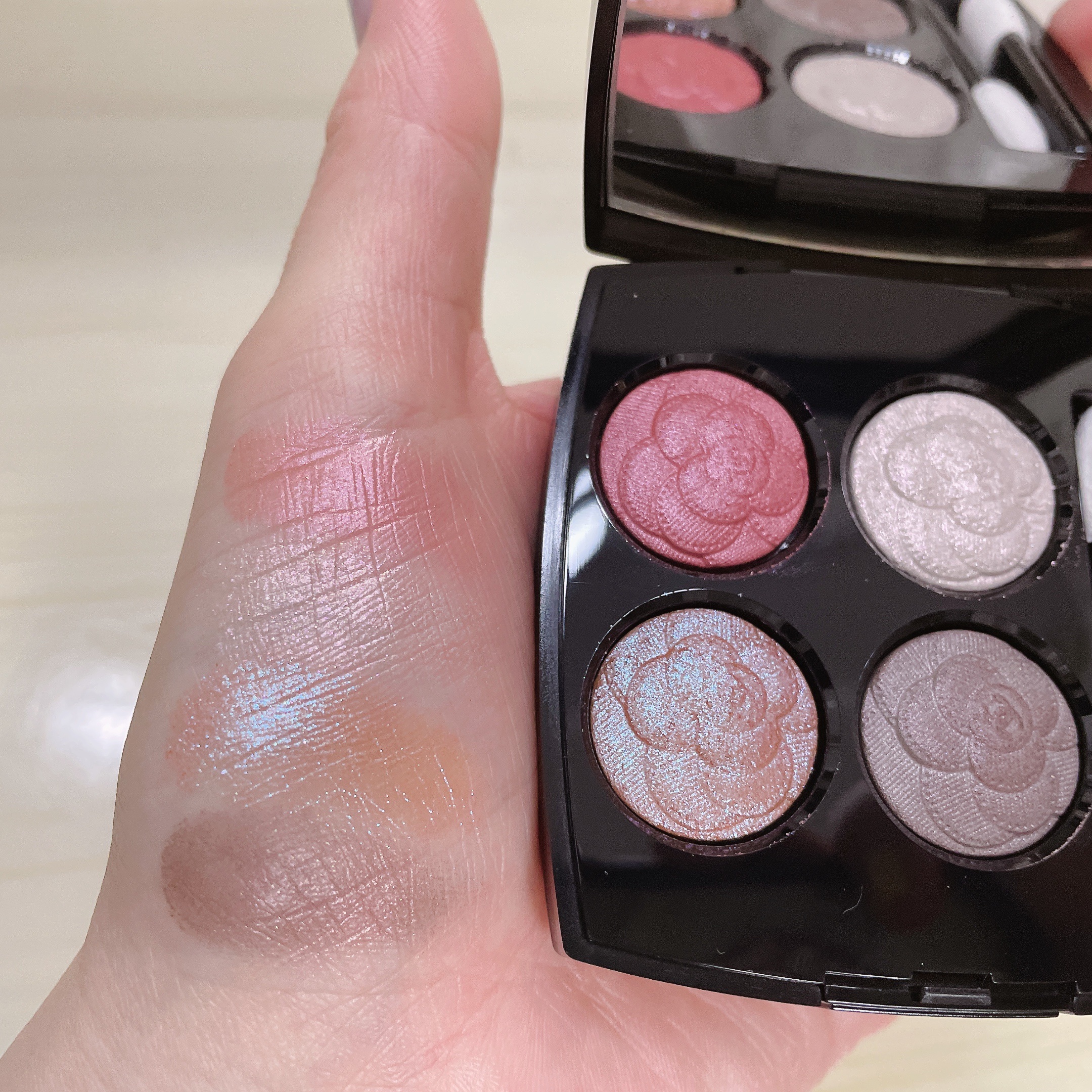 シャネルの春限定色!買いました! これはまた新しい!何せテーマが近未来。AIの時代が幕開けしてるところにシャネルはメイクでそれを取り入れようとしてるのかしら。 左下カラーなんて大きめの青ラメががっつり入ってて下手すぎると悪目立ちするのではと思いきやさすがシャネル様としか言えない肌馴染みの良さ。 春コスメらしくちゃんと春っぽさもある💠 シャネルの表現する近未来を堪能してみたい方はぜひぜひチェックしてみてね🩷