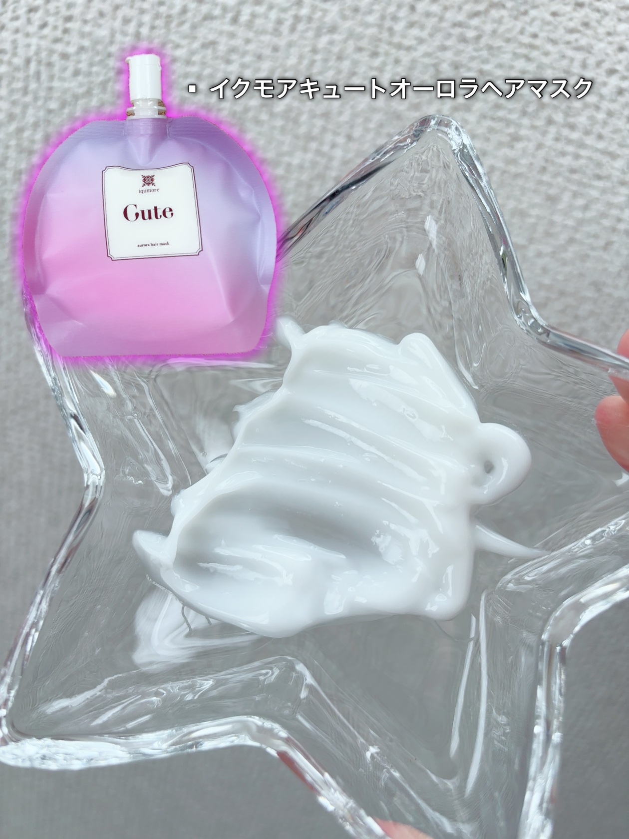 イクモアキュートヘアケアエッセンスは頭皮美容液であり化粧品です。ジェル状のテクスチャで液ダレしにくく頭皮に塗布しやすい! ミルキィオイルとヘアマスクは、アールグレイティーの香り🫖でとても癒されました。 インバスから、アウトバスまで楽しくケアできて嬉しいセット☺️