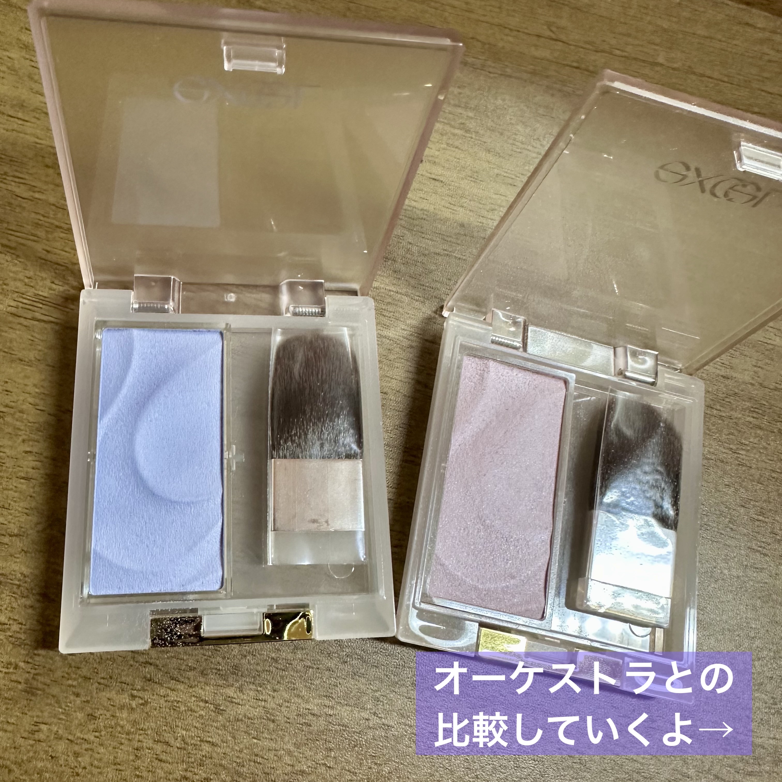 おトム→粉がピタッと密着する。 溶け込むようにまぶたに馴染む。発色が良いのでそう何度も何度も塗らなくても大丈夫。 エクセル→おトムに比べ粉っぽい (とは言えこの価格ではしっとり系) 締め色以外の発色があまり良くなかったのでおトムの濃さに合わせる為には3、4回塗り重ねないとダメだった。 おトム→まだツヤ感ラメ感しっかり残ってる。 色もそんな変わらずキレイ。粉飛びラメ飛びほぼ無し優秀。