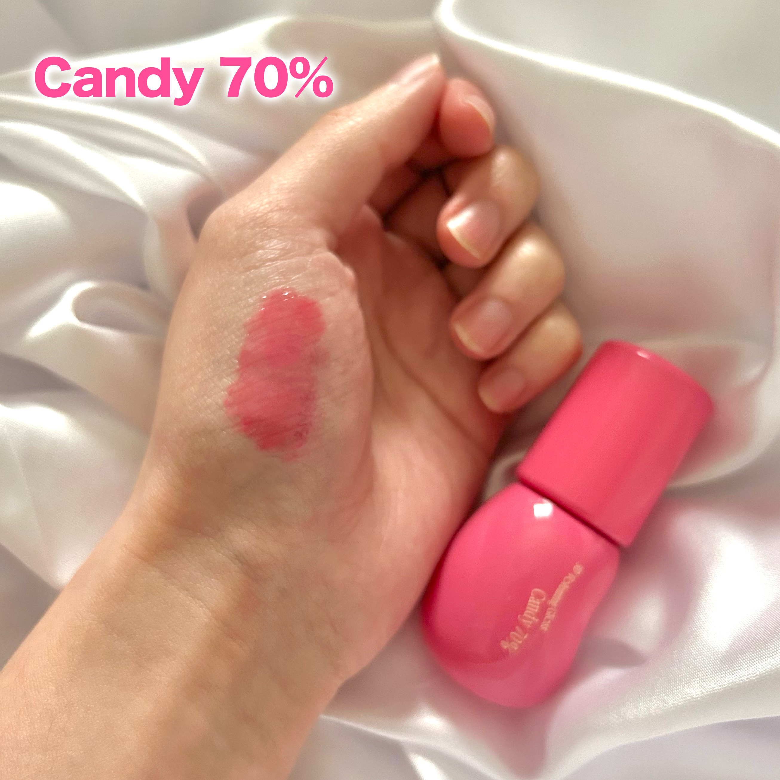 粘度がちょうどいい‼️ グロスだけど全然水っぽくなくてバーム並に密着してくれる、保湿力やばい、全然乾燥しない😭 色味はCandy70%が正統派青みピンク、Peachが淡いニュートラルピンクって感じ!! 濃度選べるのヤバいよね、普通に、賢すぎるだろ