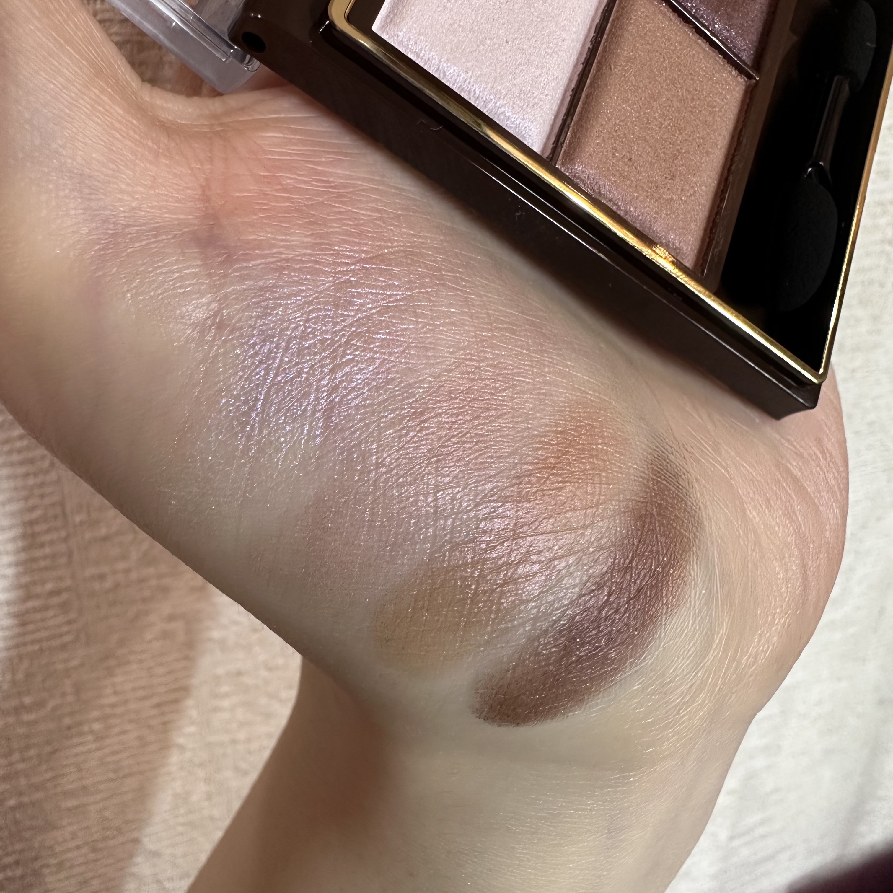 おトム→粉がピタッと密着する。 溶け込むようにまぶたに馴染む。発色が良いのでそう何度も何度も塗らなくても大丈夫。 エクセル→おトムに比べ粉っぽい (とは言えこの価格ではしっとり系) 締め色以外の発色があまり良くなかったのでおトムの濃さに合わせる為には3、4回塗り重ねないとダメだった。 おトム→まだツヤ感ラメ感しっかり残ってる。 色もそんな変わらずキレイ。粉飛びラメ飛びほぼ無し優秀。