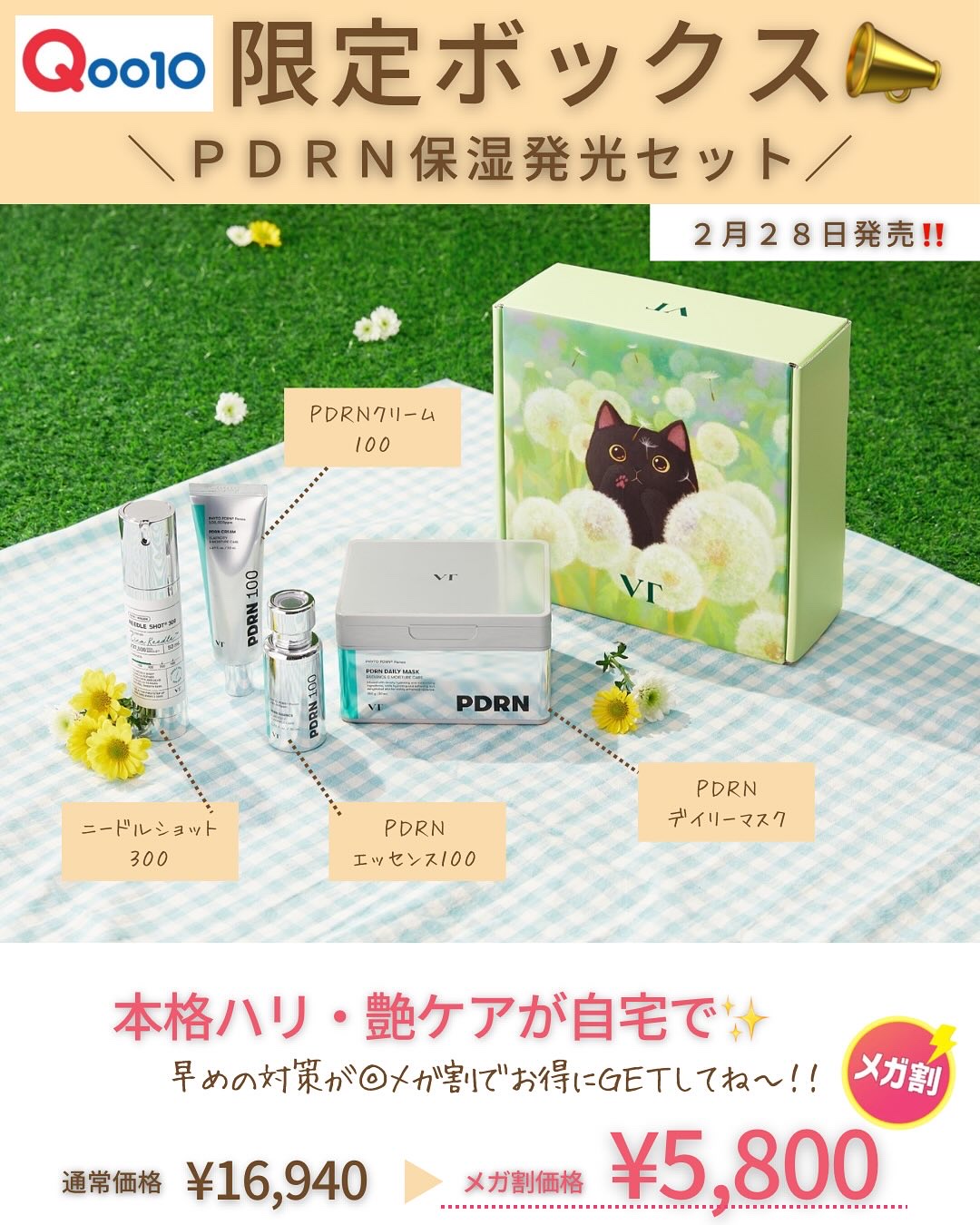 メガ割限定ボックスセットの発売が開始されています! こちらのPDRN保湿発光セットはデイリーマスクとエッセンスもセットで通常価格16,940円がメガ割クーポン適用時価格5,800円と最大66%割引価格で購入可能なので見逃せない✨✨ ❣️発光ツヤ肌を手に入れるチャンス❣️