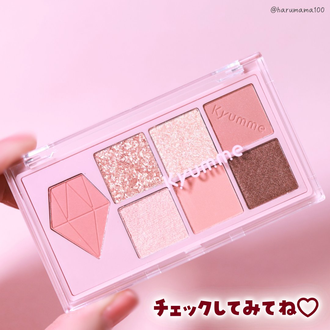 マット部分や締め色の部分は全く変化がわからなかったけど左側2段のキュンミーが柔らかくなってた!! 発色や色持ちなのかと思ったら、単純にテクスチャーが柔らかくなるだけでした👀 UR GLAMのマルチパーパスパレット持ってる人はわざわざキュンミーの買わなくていいかも〜
