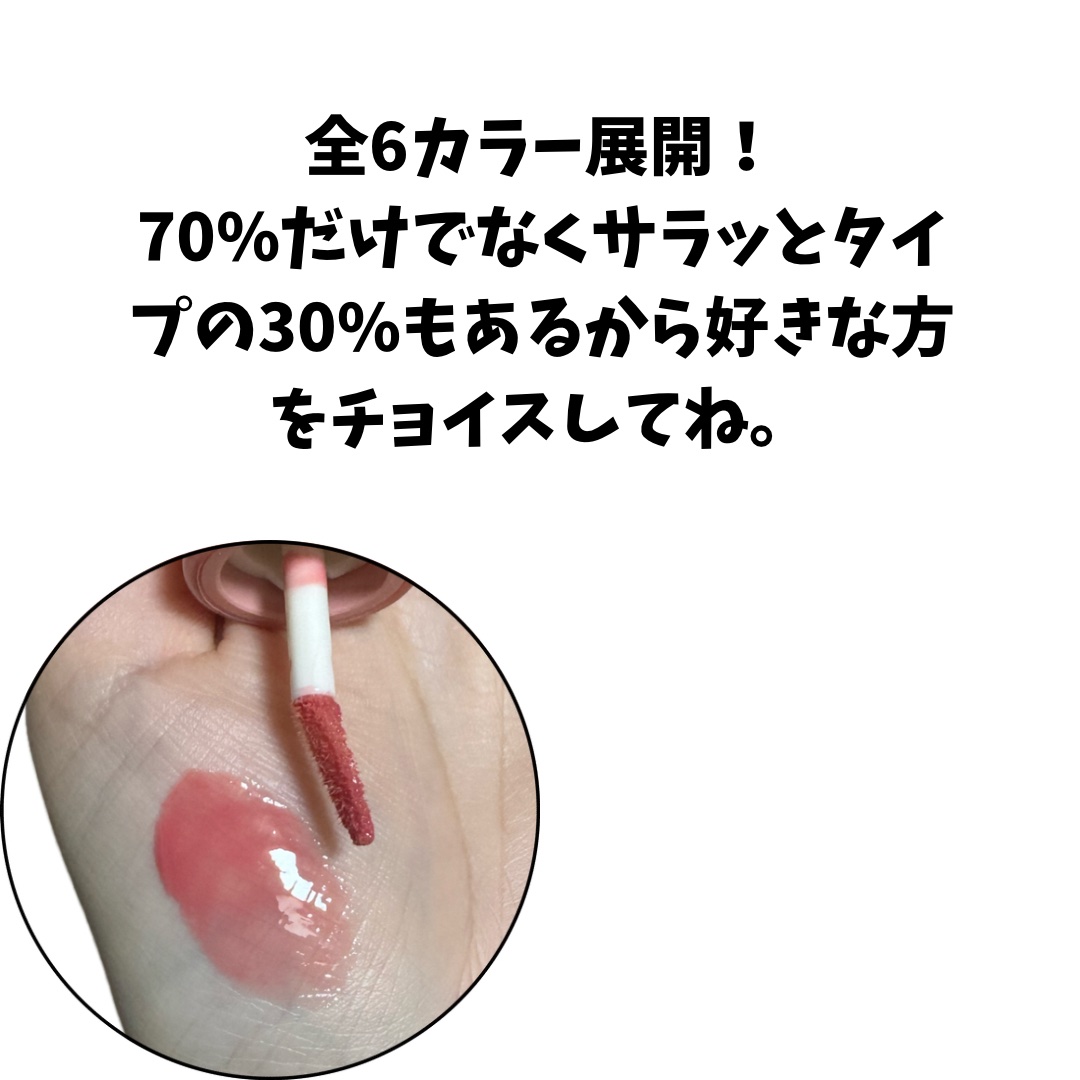 | 口紅・グロス・リップライナーランキング第6位 | 水彩画のような30%、鮮明だけど透明感のある70%の2種類の濃度があるので同じカラーでも違った発色が楽しめます♡ | 詳細を見る | |