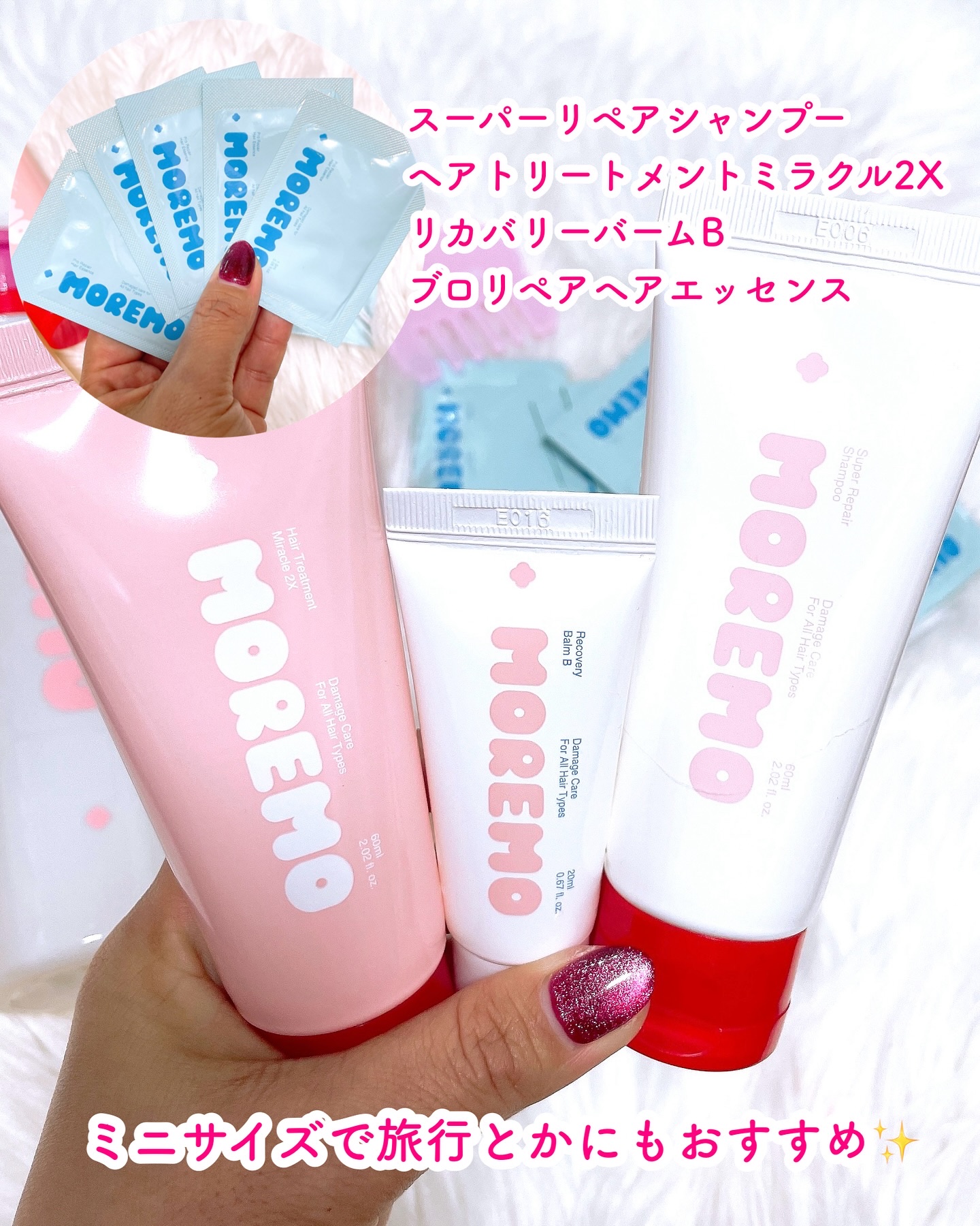 見た目も可愛く豪華&お得♡moremoのホリデーギフトꕤ🤍moremo🤍ꕤ••┈┈••ꕤ••┈┈••ꕤ••┈┈••ꕤ••┈┈••ꕤモレモダメージケアホリデー8点セット本品内容・スーパーリペアシャンプー 480mL・ヘアトリートメントミラクル2...