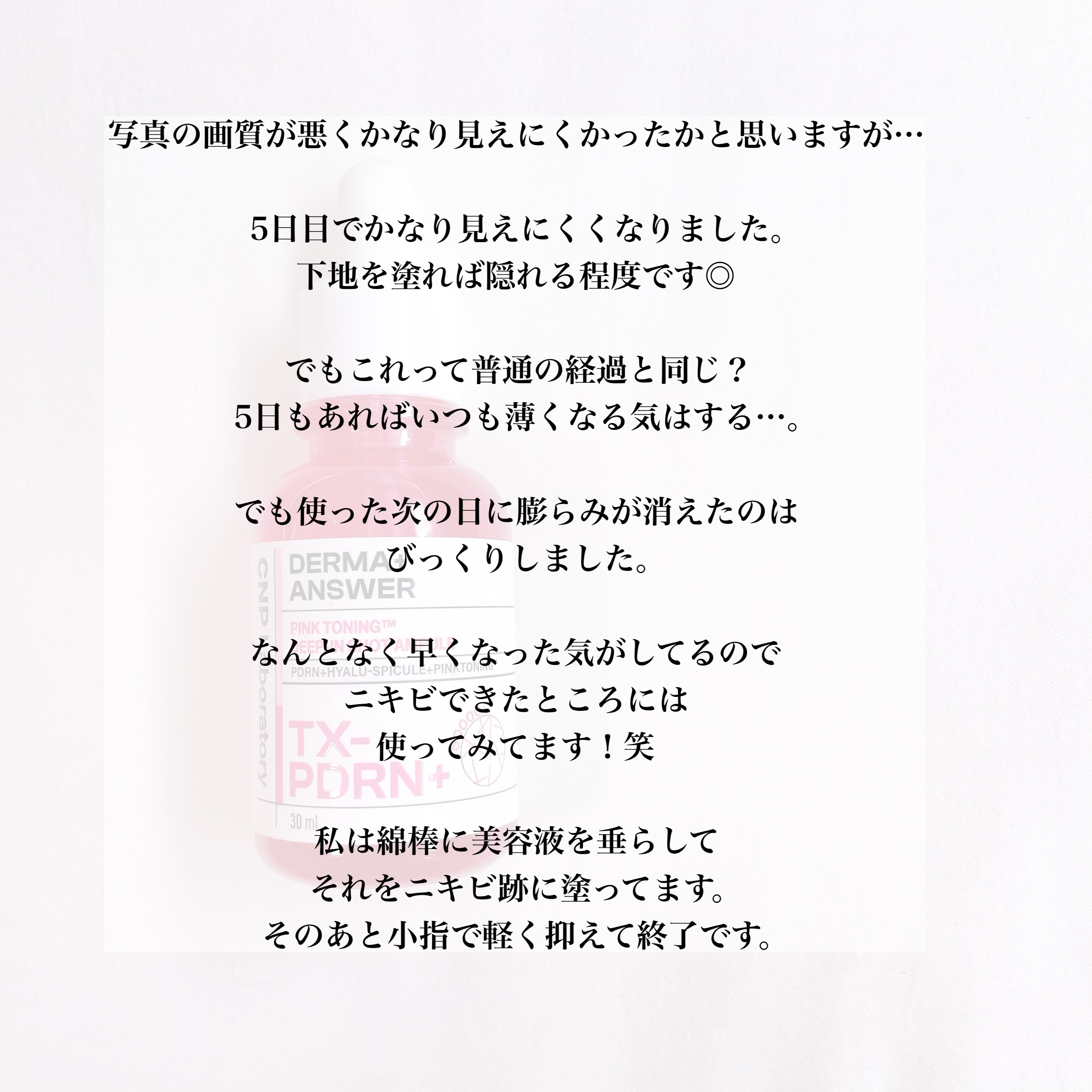 PDRN、トラネキサム酸、ナイアシンアミドなど有効成分が豊富に含まれている 針美容液だけど、そこまでヒリヒリ感もなく、苦手な方や初めて使う方にも使いやすい 使用後は少し肌のくすみが改善された気がする!