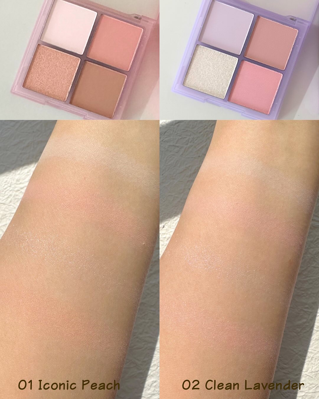 新作アイシャドウはベージュを基調としたカラー。 01 ナッツベージュ 馴染みの良いベージュ、比較的肌色問わず使える王道ブラウン。 02 ローズベージュ ほんのりピンクが可愛くて、普段ピンクを使わない方でも使いやすいピンクベージュだと思います! ラメ・パール・マットと3種入っているので 組み合わせで自分に合うメイクが出来るはず◎ ラメ飛びもしにくくて、優秀プチプラシャドウです✨