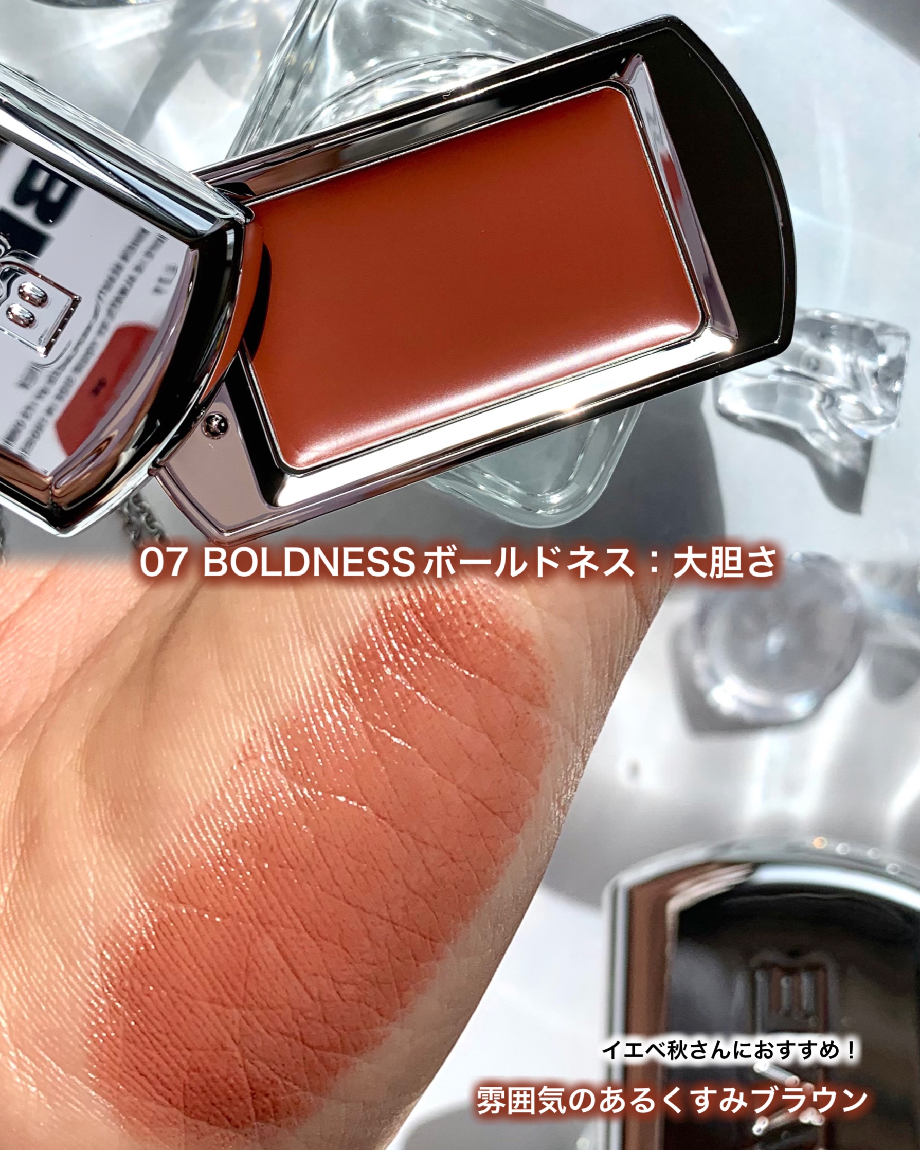- スライディング容器に入れたBRAYEだけの感性を込めたリップ&チーク。 全10色展開。リンゴ種子オイルが含有されており、リップコンディショニングケアまで。 スッと体温に溶けるバームタイプで高発色で密着力の高いテクスチャー。 専用のストラップとブラシで自分なりの個性あふれる「ユニークなカスタムコスメ」としても、ファッションアイテムとしても大活躍できます。