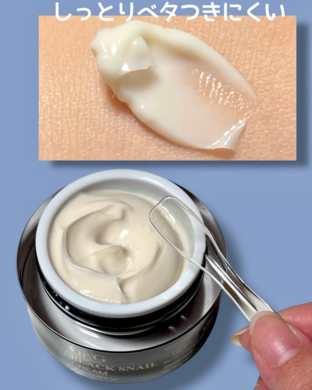 保湿だけでなく、美白、しわ、弾力のケアまでできる、クリーム! ブラックスネイルを20%配合し、ブラックプロポリスを配合してエイジングケアに必要な栄養をしっかりと肌に与え、もっちりとした肌へ! 濃厚なクリームでしっとり✨️ベタつかず、もっちりするので使いやすいです💗 ブラックスネイルシリーズ好きな方多いですよね✨️私も実際に使用して好きになりました🥰 使用感も、肌に優しいところも、好きです🫶🏻💗 気になる方は是非チェックしてみてね🐰✅Qoo10𓂃⑅⃛
