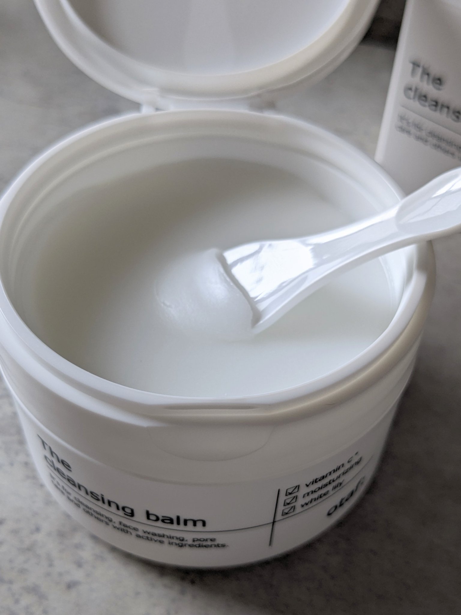 しっかり落として、洗いあがりしっとりマイルドクレンジングバーム。ビタミンC誘導体・レチノール・CICAなど話題の成分がたっぷり配合されています。 蓋はワンタッチで開閉でき、中にスパチュラも付属されています。 優しくくるくると馴染ませるとメイクがぐんぐん浮いてきてくれているのが分かります。