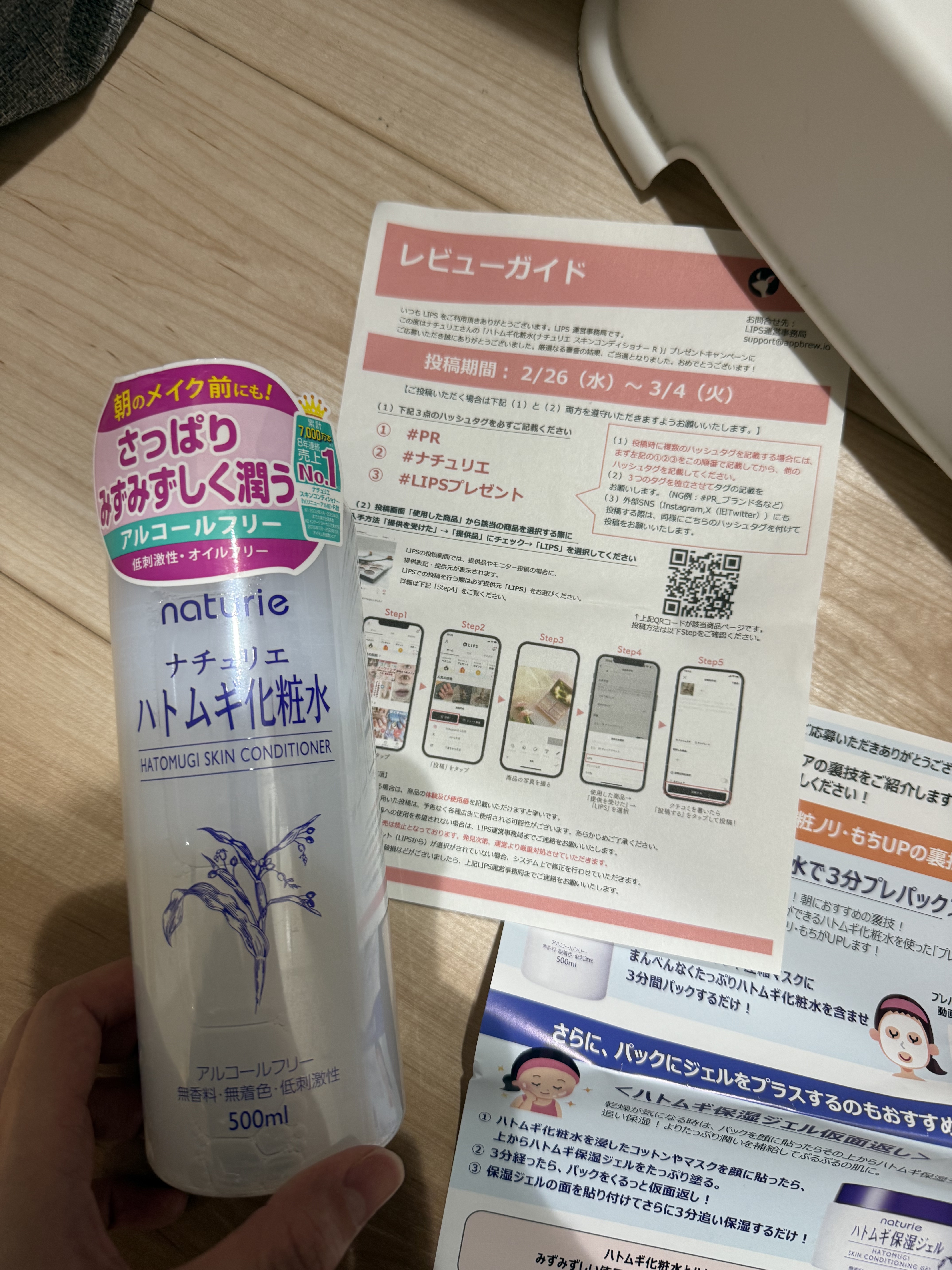 LIPSで当選しました¨̮♡ありがとうございます。・・【ナチュリエ】▼ハトムギ化粧水・・シャバっと軽いのに、重ねるほど肌が落ち着く感じ♬ベタつかないから朝のメイク前にも使いやすいよ◡̈♥︎・・毎日たっぷり使えるのが嬉しい♬気になってた人はチェ...