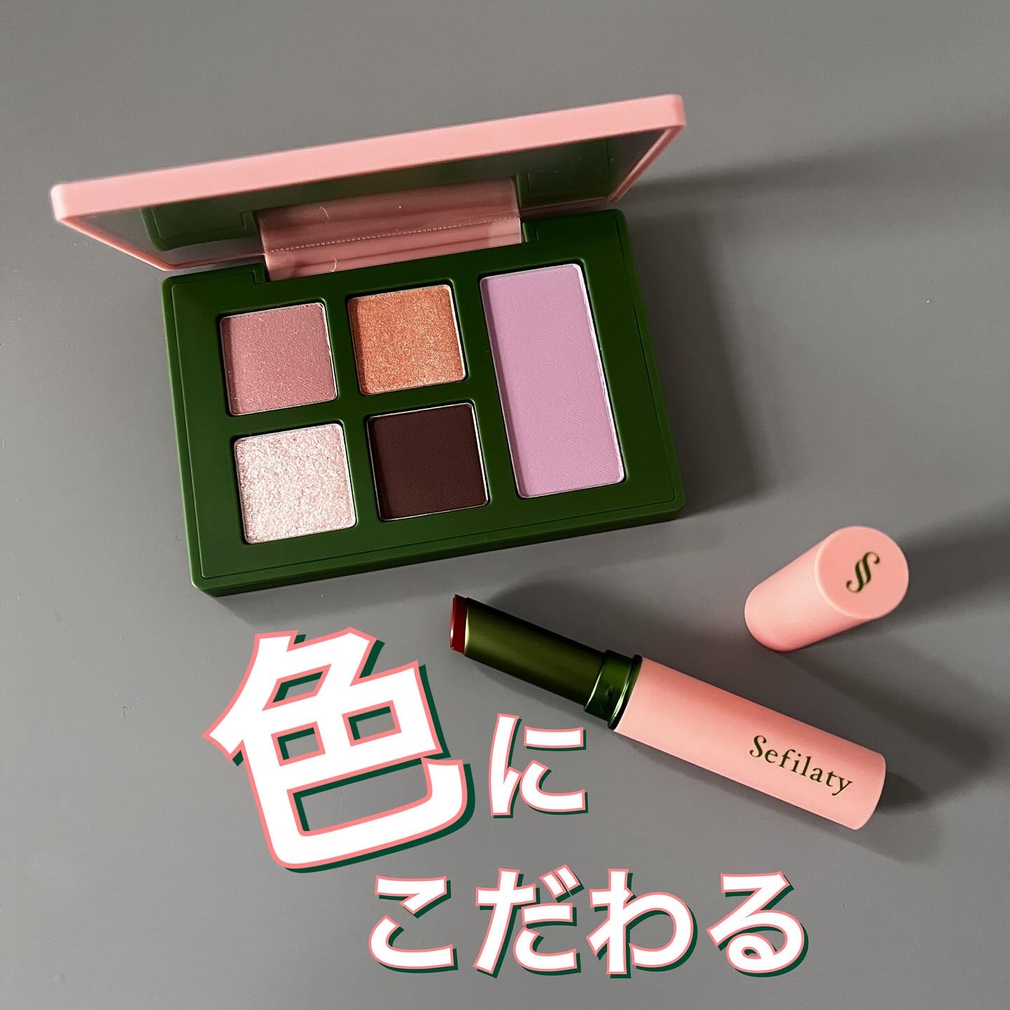 Instagramで話題になっている美容系クリエイター 新希 咲乃 さんのプロデュースしたメイクアップブランドSefilaty(セフィラティ) クイーンバレットアイズはグリーンとピンクのパケが目をひきます。ありそうでないカラーでかわいい。 ラメの大きさがランダムでキラキラがキレイにのり、ラメとびもなさそう。普段の日もお出かけにも使える優秀なアイパレです。