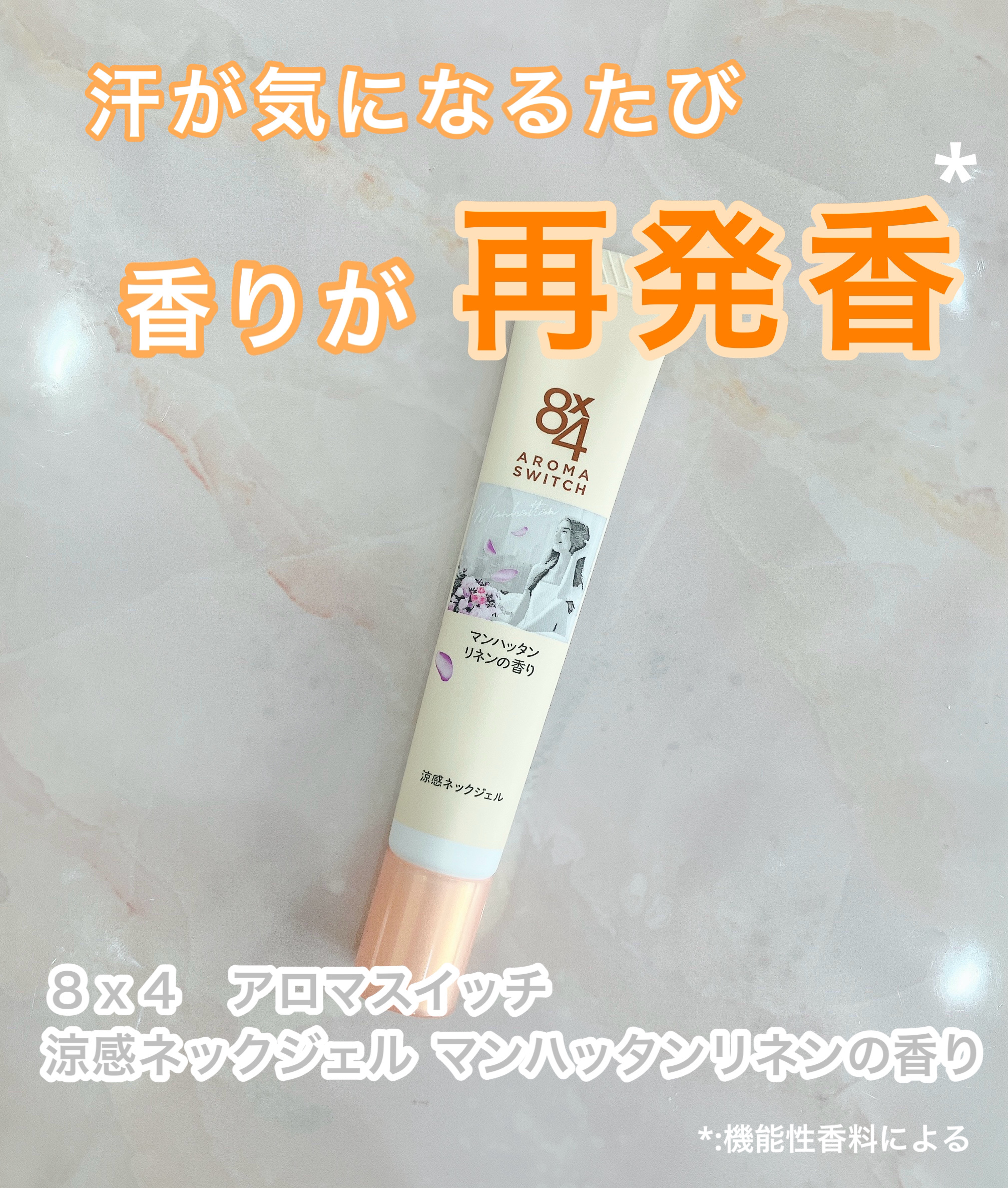 .#PR.8x4 アロマスイッチ 涼感ネックジェルマンハッタンリネンの香り..8×4の涼感ネックジェル。これから暑い季節になってくると、このアイテムが大活躍してくれます!適量を手にとり首元に塗布。体温でとろけるなめらかなジェルは、肌に馴染ませ...