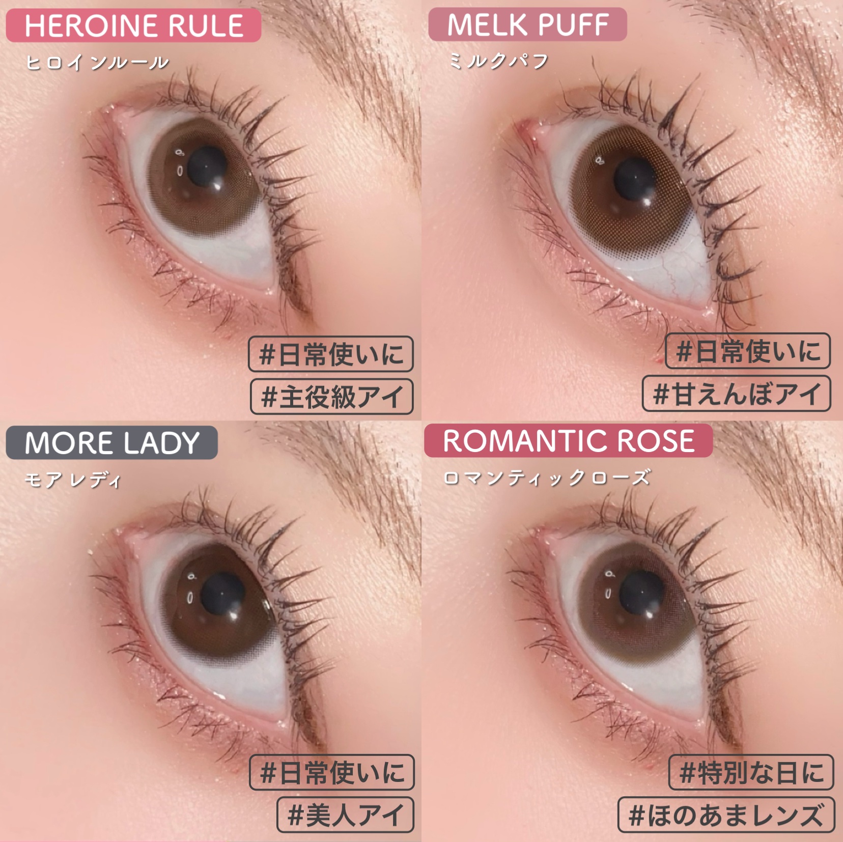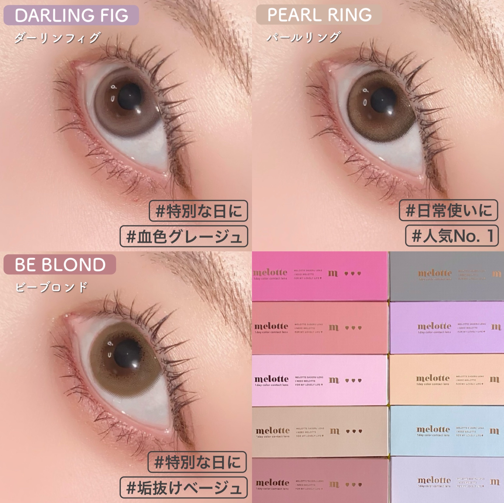このカラコン”かけひきレンズ”っていうの🤍 朱里ちゃんらしいネーミングセンスもポイントだね\(◡̈)/♥︎ Darling figは、じゅわっと彩るモーヴカラーとふんわり細フチのグレージュカラー💞 柔らかくて透明感があるカラコンだよ👀✍🏻💭 More ladyは、パキッとし過ぎない抜け感のあるくりっとダークブラウンカラー♥ シンプルそうでそうじゃない、接近戦も美しい、美人仕上げのカラコンだよ👌´-