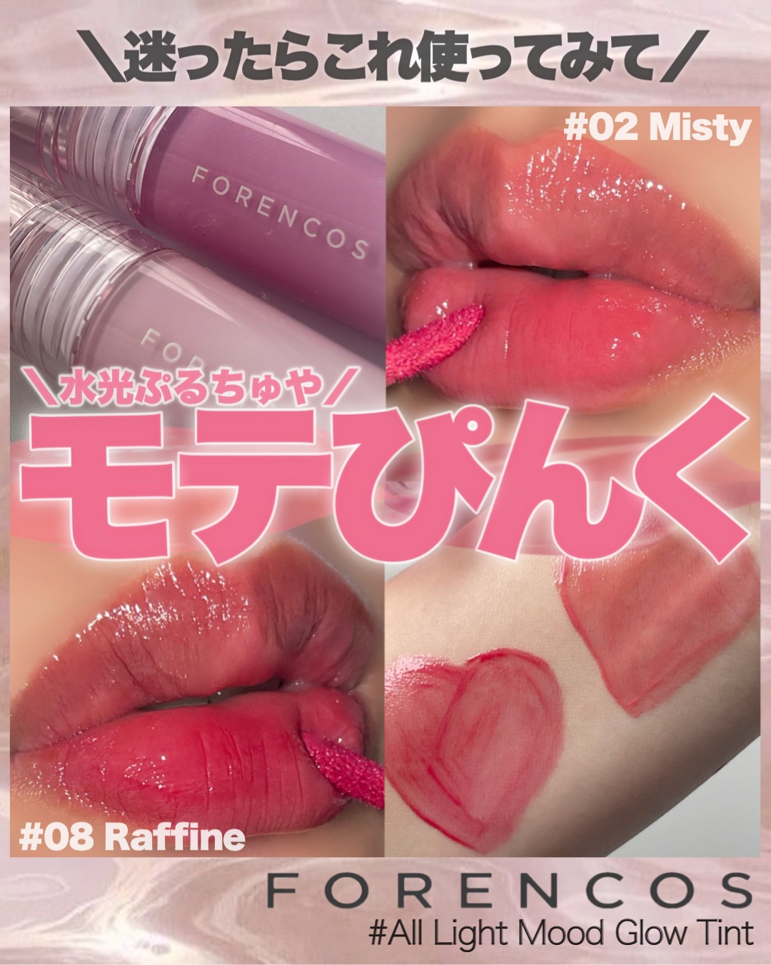 韓国発のコスメブランド「FORENCOS」🌸 1月31日に新発売したばかりの新作リップシリーズ💋💕 何度重ねても軽やかな水彩テクスチャーで、薄い保湿膜が唇を潤いで包み込むような、長時間色もちしてくれるのが特徴のツヤ系Glow Tint💎✨ 唇にクリーミーに溶け込むシフォンテクスチャーで、何度重ねても柔らかく密着する繊細なベルベットカラー🍦✨