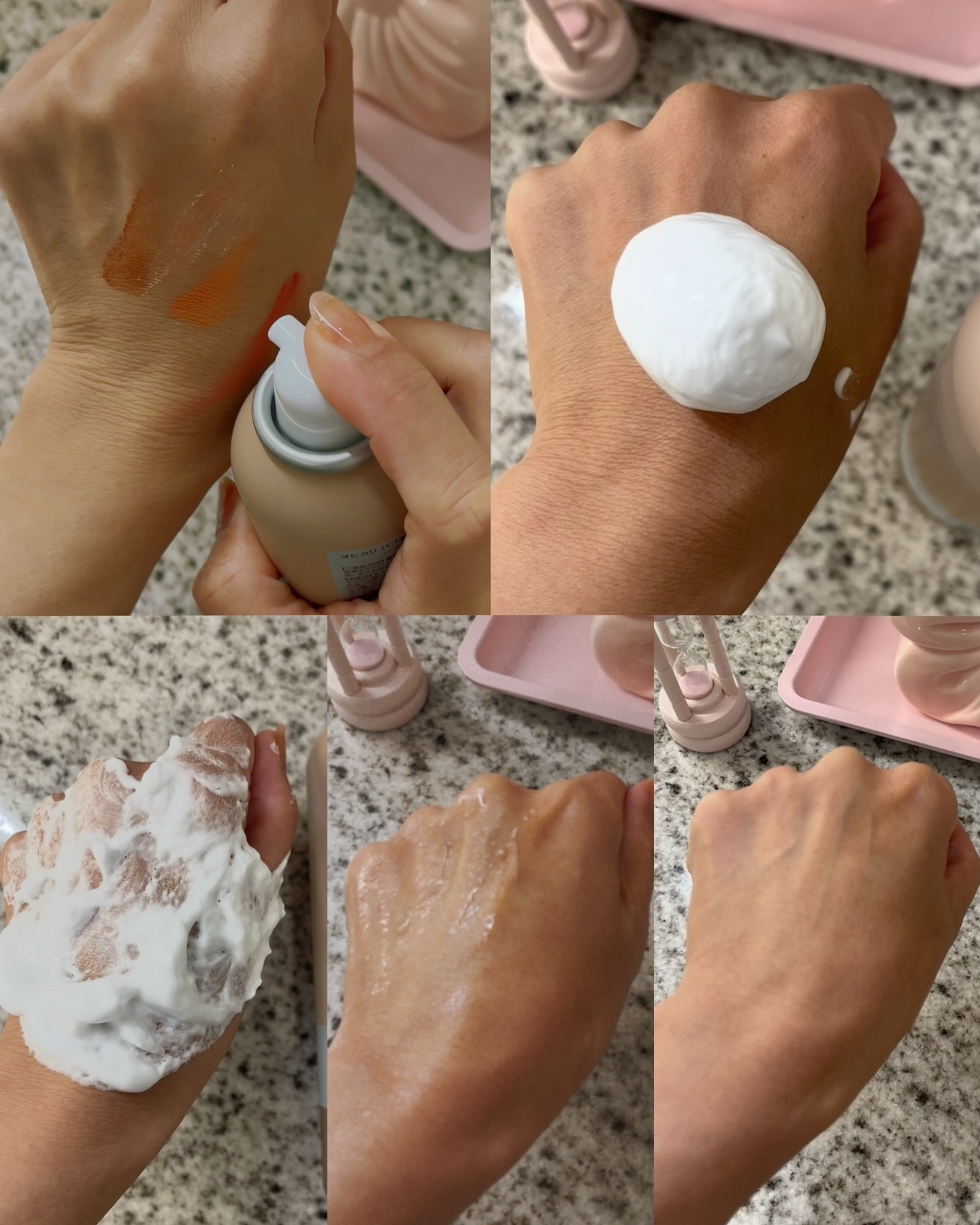 塗ると泡が出来るバブルが効果的な新感覚セラム⚫︎テクスチャー…粒々入りのセラムをお肌に乗せて馴染ませると泡状になって弾けます! このジェルクリームがまた、うるうる水分たっぷりクリーム♡ジェル状なのに、お肌に乗せるとふわっと水分が広がり気持ちいいんです✨ お肌にうるおいを与えてくれる感覚が、気持ちが良すぎて、たっぷり使用しています。このセット、1回で何回も使いたくなるので使いすぎに注意です🫶