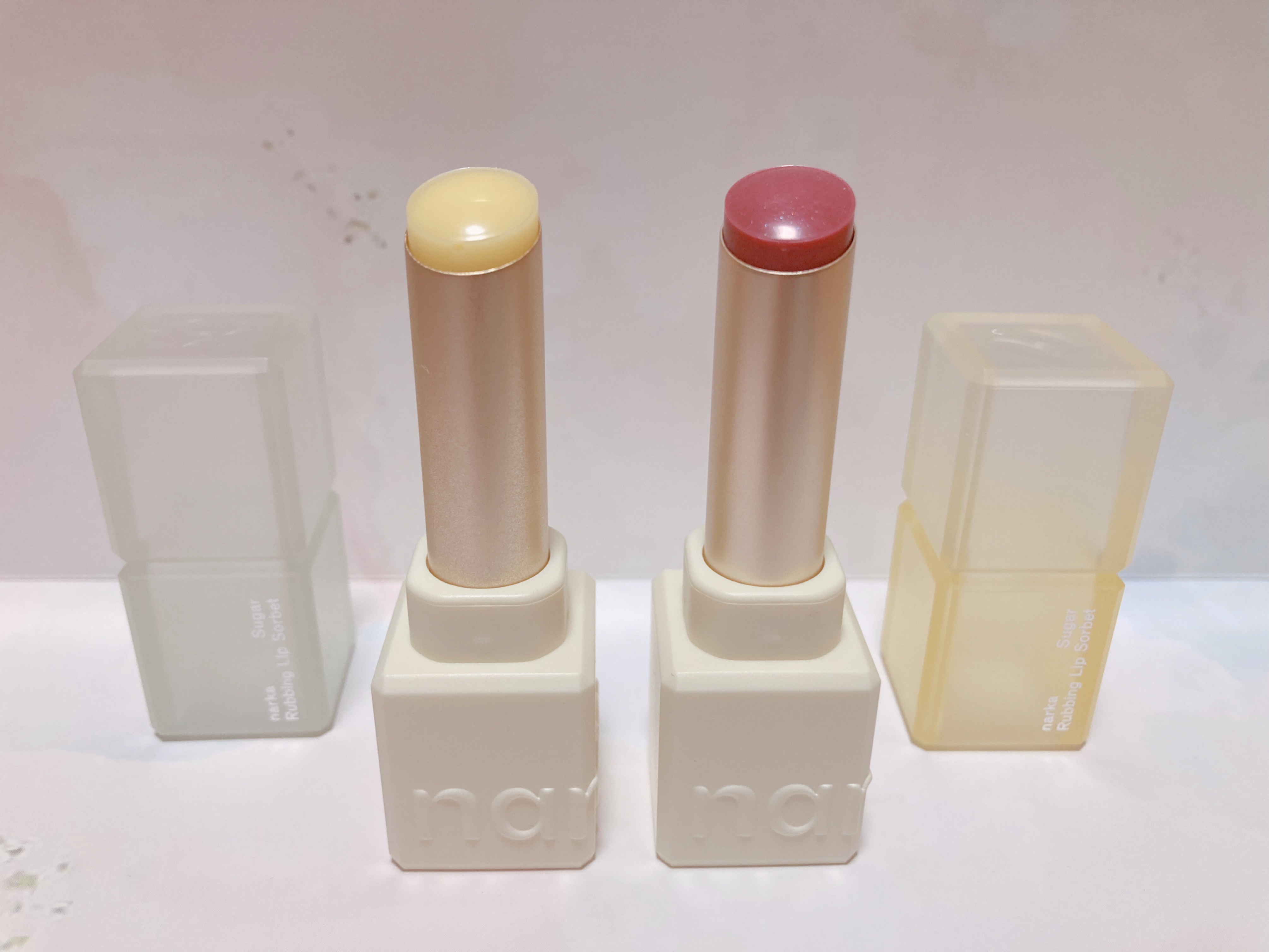 シュガーラビングリップソルベはヴィーガンシュガー(砂糖)配合のスクラブリップバームで角質ケアとカラーケアが同時に出来ます。 蓋を開けるとはちみつレモンのような甘い香りがします🍋🍯 唇の温度でスクラブが溶けて、艶と潤いが持続し、ふっくら柔らかな唇へと導きます✨