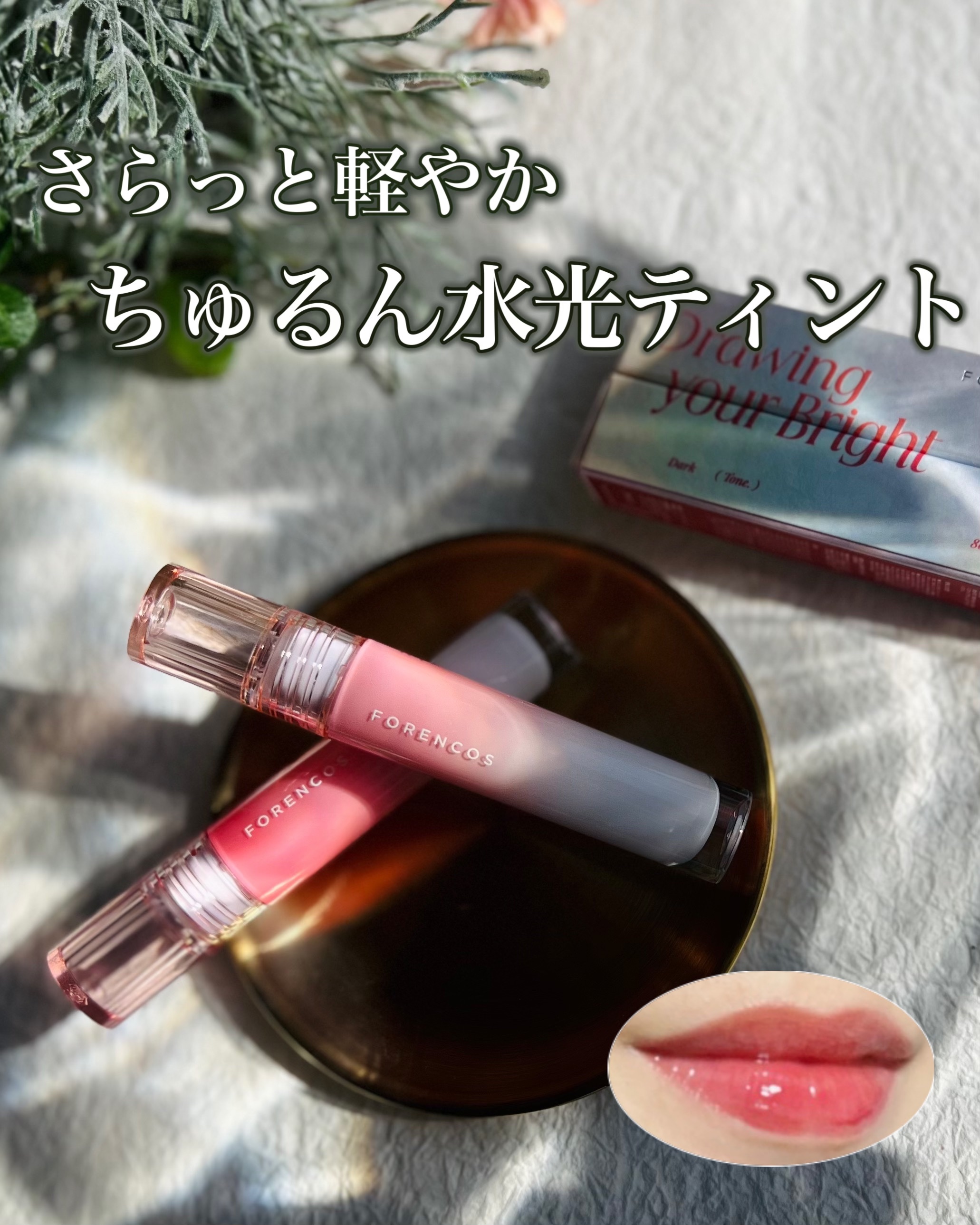 韓国発のコスメブランド「FORENCOS」🌸 1月31日に新発売したばかりの新作リップシリーズ💋💕 何度重ねても軽やかな水彩テクスチャーで、薄い保湿膜が唇を潤いで包み込むような、長時間色もちしてくれるのが特徴のツヤ系Glow Tint💎✨ 唇にクリーミーに溶け込むシフォンテクスチャーで、何度重ねても柔らかく密着する繊細なベルベットカラー🍦✨