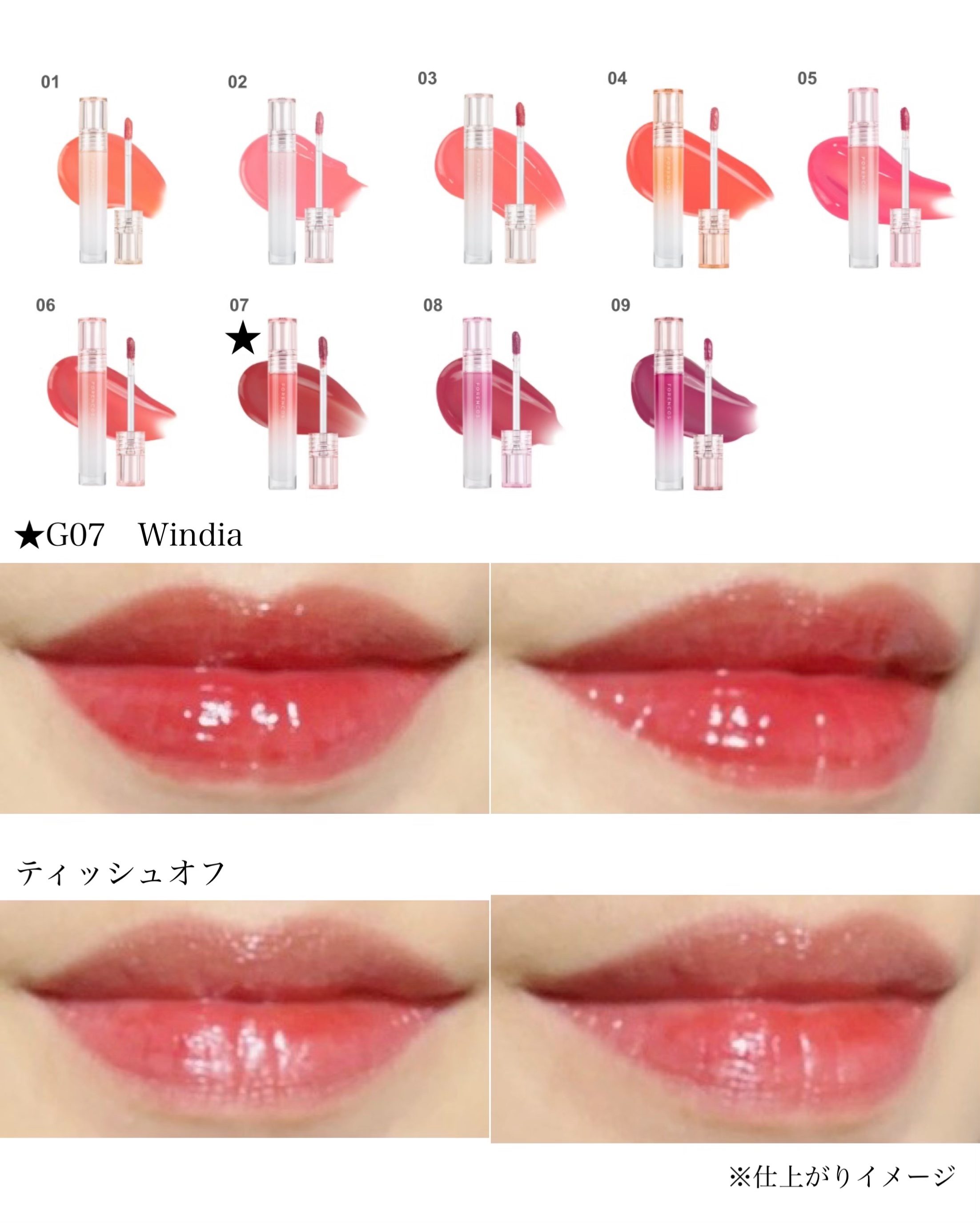 | 軽いテクスチャで透き通るように輝く水光ティント。このリップ、色持ちが本当に良い🥺♡ | 詳細を見る | |