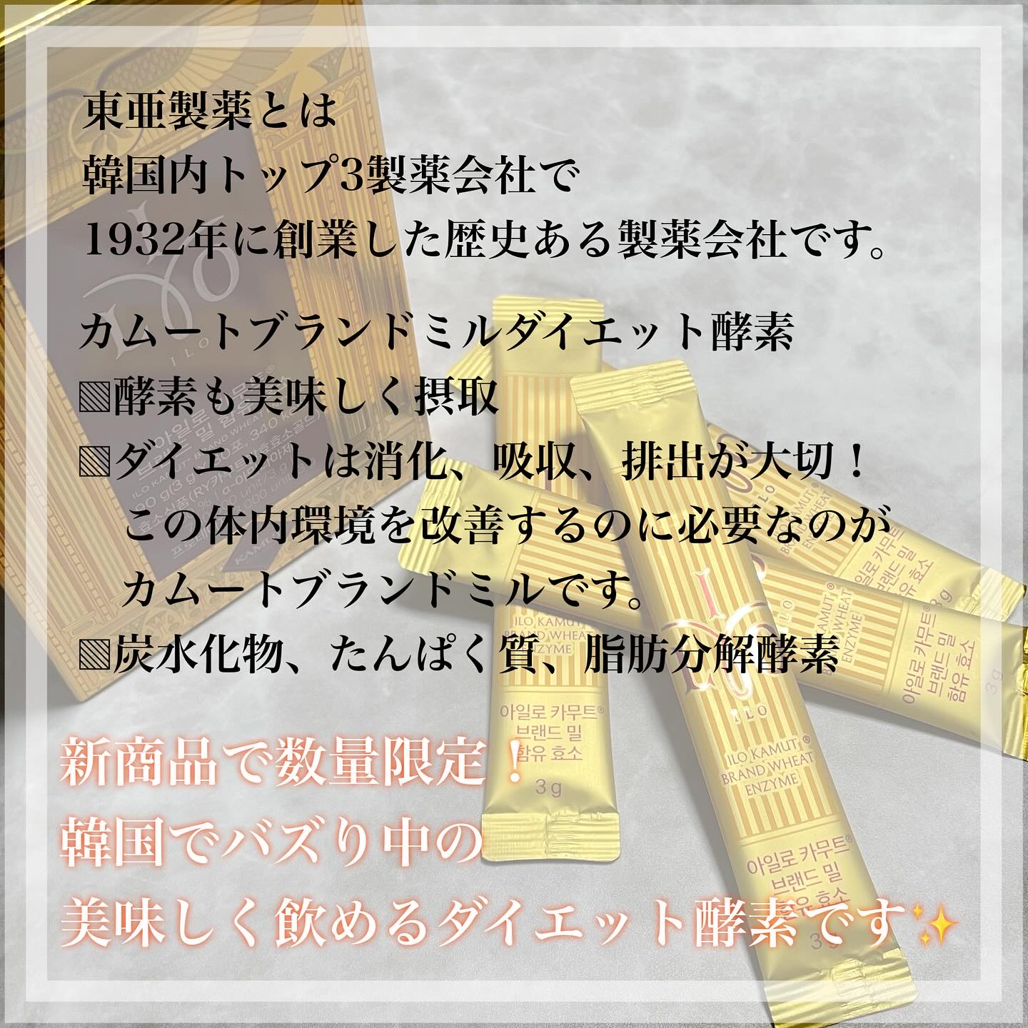 韓国トップ3の製薬会社、東亜製薬から新発売したダイエット酵素❣️ 韓国で大バズりして売り切れ続出!! 味はダイエット酵素なのにすごく美味しくて、きな粉をそのまま食べてるみたいだから続けやすくてオススメ✨ #ILO酵素 #東亜製薬 #ダイエット #インナービューティー