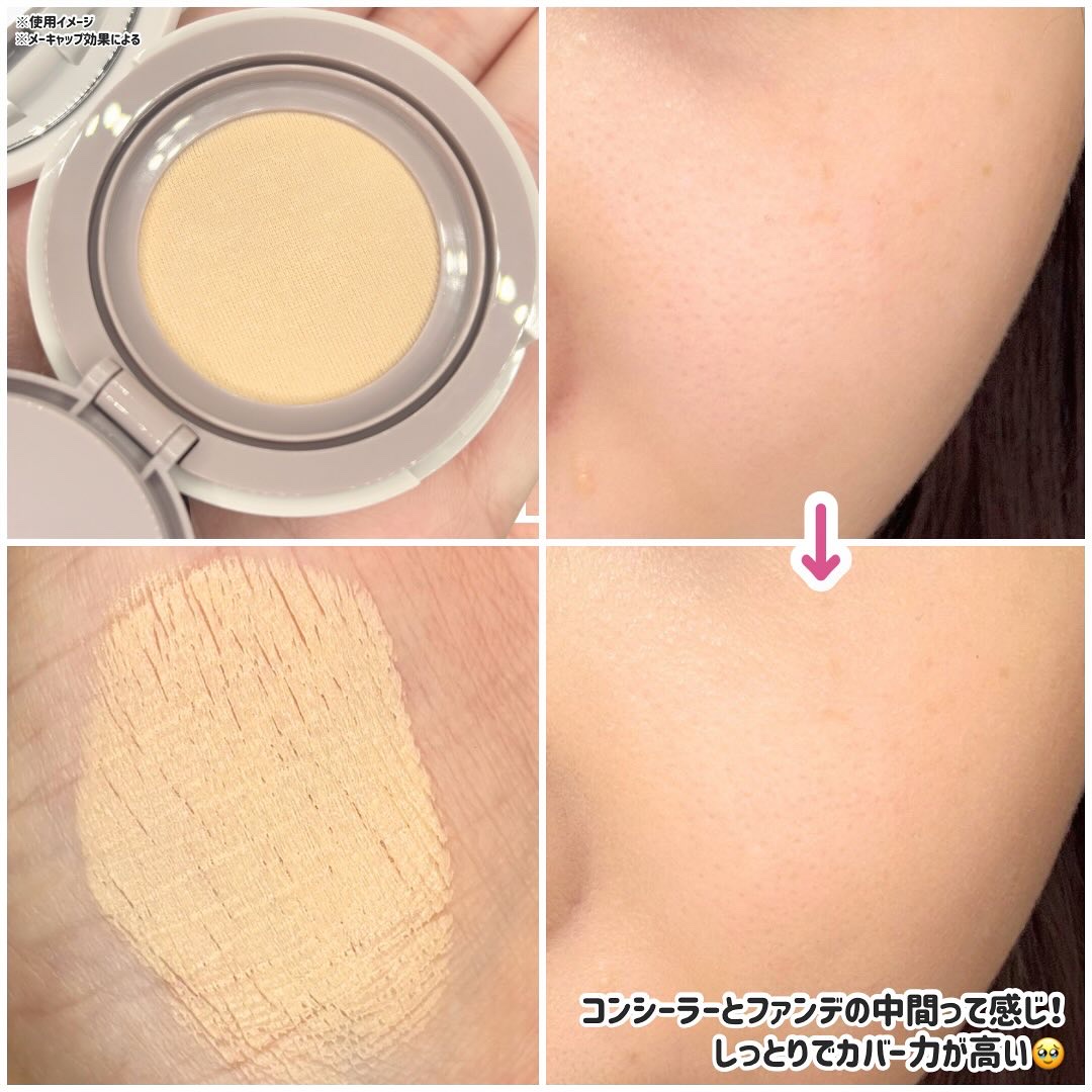クッションタイプの進化形コンシーラーです✨ 指サイズのパフが可愛い💙 ハイカバーなのに薄膜仕上がりが15秒で完成します。 クッションタイプなので乾燥せず保湿してくれて、厚塗り感がなくなります🤲 キメ細かなメッシュフィルターを通ることにより、薄膜で均一にムラなく密着するから、シミ・クマ・くすみをしっかりカバー🍑