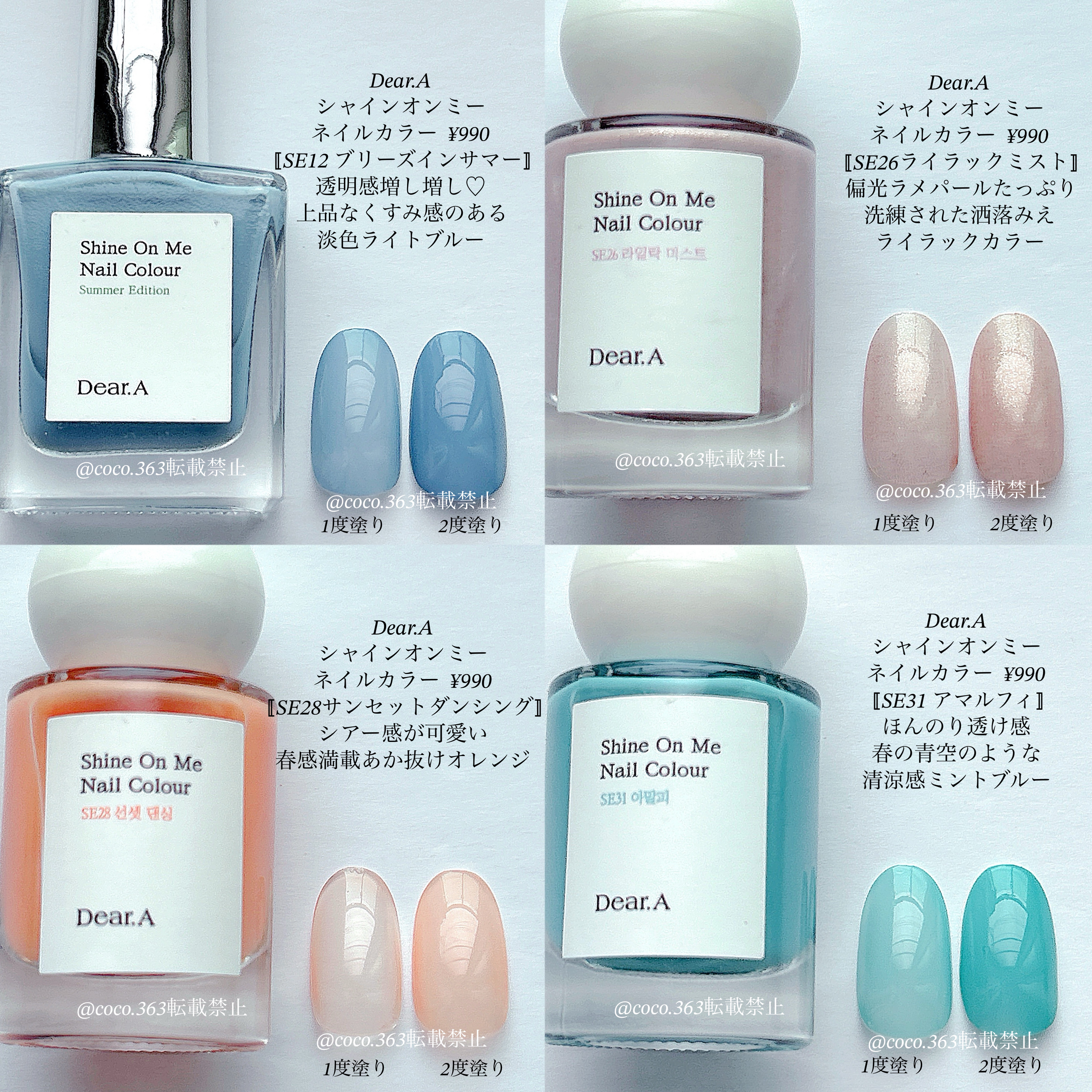 N28 スモーキーアクア N44 シックグレー N52 マーメイドスケール N57 インディゴブルー N82 クラウドレススカイ N85 9PMは以前の限定ですが amazon等のECサイトで 定価で購入できるので 気になる方はぜひ🫶🏻