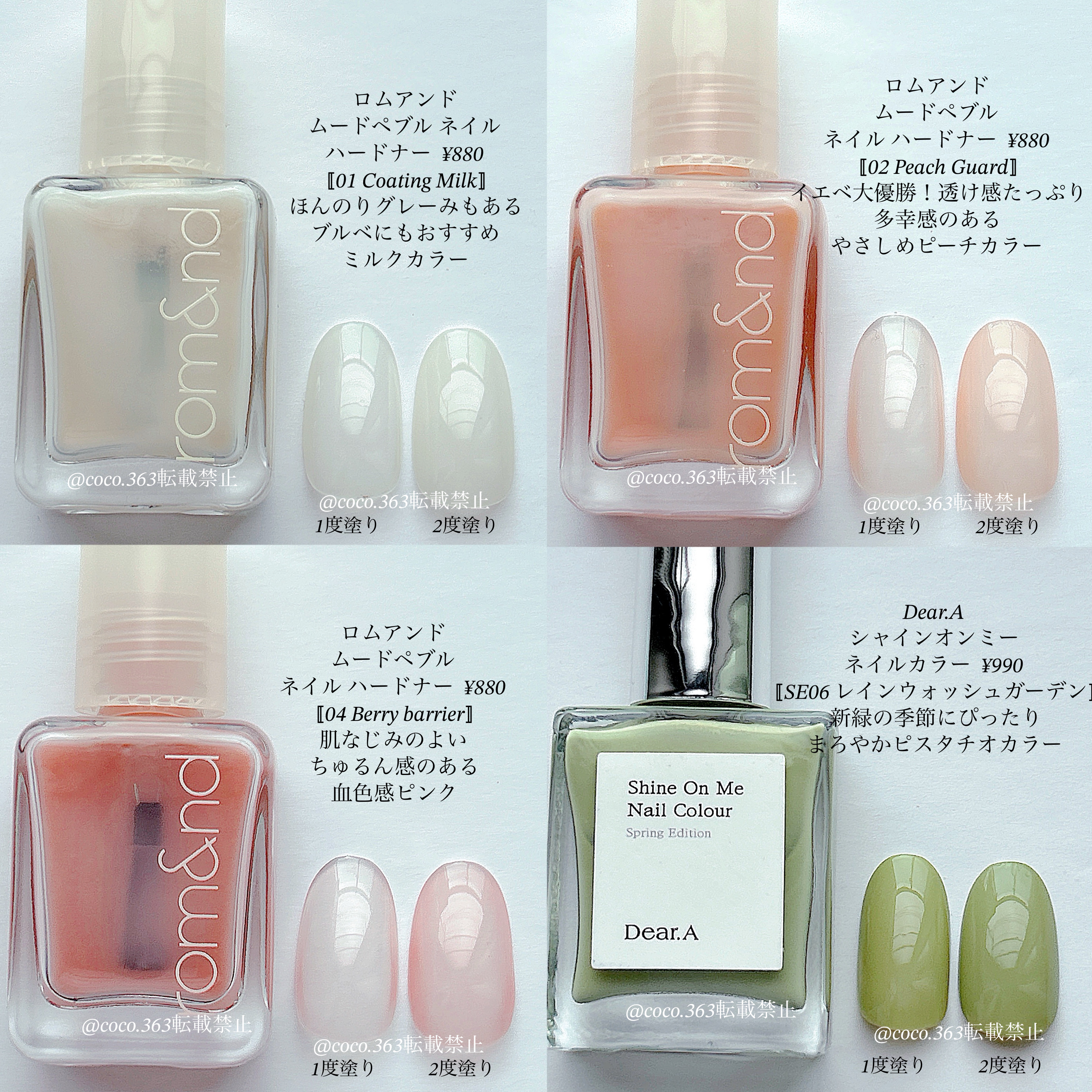 04 Berry barrierはふんわり血色感を演出してくれるクールヌーディーローズ シアーな発色だけど塗り重ねるほど光沢感と発色はアップします✨ 薄くなった爪をしっかりと包み込む3段コーティングバリア 【ケラチン、ホホバ種子油、黒豆エキス】 ケアを続ける場合は配合されているケラチン成分の特性上、2日〜3日後に脱落が進んでくるためリムーバーで落としてから塗り直す!