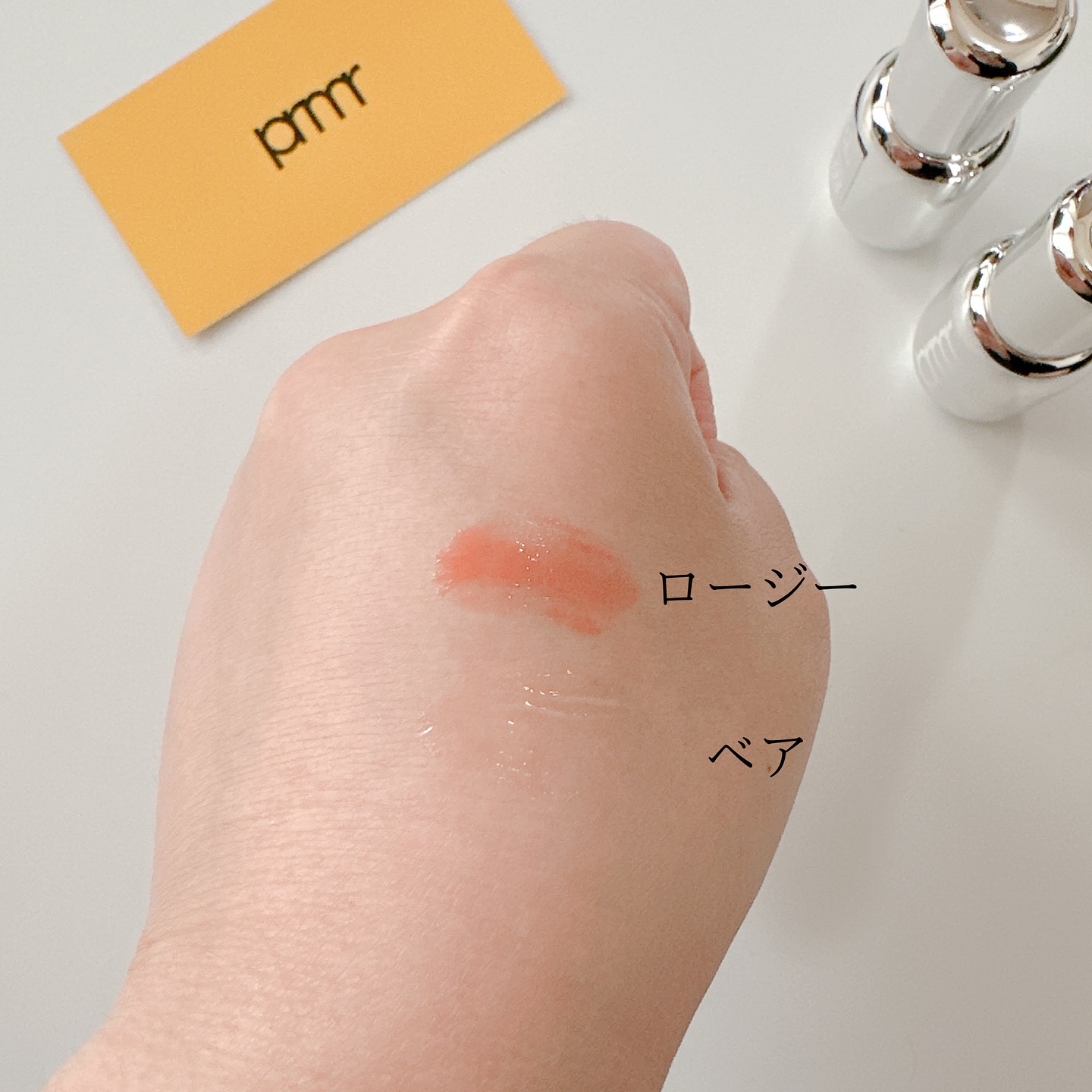 - <ロージー> 水添ポリ(C6-14オレフィン)、水添ポリイソブテン、トリ(カプリル酸/カプリン酸)グリセリル、(エチレン/プロピレン/スチレン)コポリマー、酢酸トコフェロール、ダイズ油、パルマローザ油、ニオイテンジクアオイ花油、ヒマシ油、ホホバ種子油、ローズマリー葉油、ダマスクバラ花油、オレンジ果皮エキス、テトラヘキシルデカン酸アスコルビル、レチノール、セラミドNP、ダイズポリペプチド、乳酸桿菌培養溶解質、加水分解エクステンシン、ヒアルロン酸Na、加水分解ヒアルロン酸、ヒアルロン酸クロスポリマーNa、ヒアルロン酸、アセチルヒアルロン酸Na、エチルヘキシルグリセリン、トリイソステアリン酸ポリグリセリル-2、ラウリン酸ポリグリセリル-10、(ブチレン/エチレン/スチレン)コポリマー、テトラ(ジ-t-ブチルヒドロキシヒドロケイヒ酸)ペンタエリスリチル、水、水酸化Al、トリエトキシカプリリルシラン、グリセリン、プロパンジオール、BG、1,2-ヘキサンジオール、水添レシチン、トコフェロール、メントキシプロパンジオール、マンダリンオレンジ果皮油、ベルガモット果実油、パチョリ油、カミツレ花油、ラベンダー油、酸化チタン、酸化鉄、赤201、赤202 <ベア> 水添ポリ(C6-14オレフィン)、水添ポリイソブテン、トリ(カプリル酸/カプリン酸)グリセリル、(エチレン/プロピレン/スチレン)コポリマー、酢酸トコフェロール、ヒマワリ種子油、ダイズ油、パルマローザ油、ニオイテンジクアオイ花油、ヒマシ油、ローズマリー葉油、ホホバ種子油、ダマスクバラ花油、ニンジン根エキス、オレンジ果皮エキス、レチノール、β-カロチン、セラミドNP、ダイズポリペプチド、乳酸桿菌培養溶解質、ヒアルロン酸Na、加水分解エクステンシン、ラウリン酸ポリグリセリル-10、ヒアルロン酸クロスポリマーNa、加水分解ヒアルロン酸、ヒアルロン酸、アセチルヒアルロン酸Na、テトラヘキシルデカン酸アスコルビル、エチルヘキシルグリセリン、(ブチレン/エチレン/スチレン)コポリマー、グリセリン、BG、水、プロパンジオール、1,2-ヘキサンジオール、トコフェロール、テトラ(ジ-t-ブチルヒドロキシヒドロケイヒ酸)ペンタエリスリチル、水添レシチン、メントキシプロパンジオール、マンダリンオレンジ果皮油、ベルガモット果実油、パチョリ油、カミツレ花油、ラベンダー油 <スカイコーラル> 水添ポリ(C6-14オレフィン)、水添ポリイソブテン、トリ(カプリル酸/カプリン酸)グリセリル、(エチレン/プロピレン/スチレン)コポリマー、酢酸トコフェロール、ダイズ油、パルマローザ油、ニオイテンジクアオイ花油、ヒマシ油、ホホバ種子油、ローズマリー葉油、ダマスクバラ花油、オレンジ果皮エキス、テトラヘキシルデカン酸アスコルビル、レチノール、セラミドNP、ダイズポリペプチド、乳酸桿菌培養溶解質、加水分解エクステンシン、ヒアルロン酸Na、加水分解ヒアルロン酸、ヒアルロン酸クロスポリマーNa、ヒアルロン酸、アセチルヒアルロン酸Na、エチルヘキシルグリセリン、トリイソステアリン酸ポリグリセリル-2、ラウリン酸ポリグリセリル-10、(ブチレン/エチレン/スチレン)コポリマー、テトラ(ジ-t-ブチルヒドロキシヒドロケイヒ酸)ペンタエリスリチル、水、グリセリン、プロパンジオール、BG、1,2-ヘキサンジオール、水添レシチン、トコフェロール、メントキシプロパンジオール、マンダリンオレンジ果皮油、ベルガモット果実油、パチョリ油、カミツレ花油、ラベンダー油、酸化チタン、酸化鉄、赤226、黄5 <シャイレッド> 水添ポリ(C6-14オレフィン)、水添ポリイソブテン、トリ(カプリル酸/カプリン酸)グリセリル、(エチレン/プロピレン/スチレン)コポリマー、酢酸トコフェロール、ダイズ油、パルマローザ油、ニオイテンジクアオイ花油、ヒマシ油、ホホバ種子油、ローズマリー葉油、ダマスクバラ花油、オレンジ果皮エキス、テトラヘキシルデカン酸アスコルビル、レチノール、セラミドNP、ダイズポリペプチド、乳酸桿菌培養溶解質、加水分解エクステンシン、ヒアルロン酸Na、加水分解ヒアルロン酸、ヒアルロン酸クロスポリマーNa、ヒアルロン酸、アセチルヒアルロン酸Na、エチルヘキシルグリセリン、トリイソステアリン酸ポリグリセリル-2、ラウリン酸ポリグリセリル-10、(ブチレン/エチレン/スチレン)コポリマー、テトラ(ジ-t-ブチルヒドロキシヒドロケイヒ酸)ペンタエリスリチル、水、グリセリン、プロパンジオール、BG、1,2-ヘキサンジオール、水添レシチン、トコフェロール、メントキシプロパンジオール、マンダリンオレンジ果皮油、ベルガモット果実油、パチョリ油、カミツレ花油、ラベンダー油、赤202、黄5