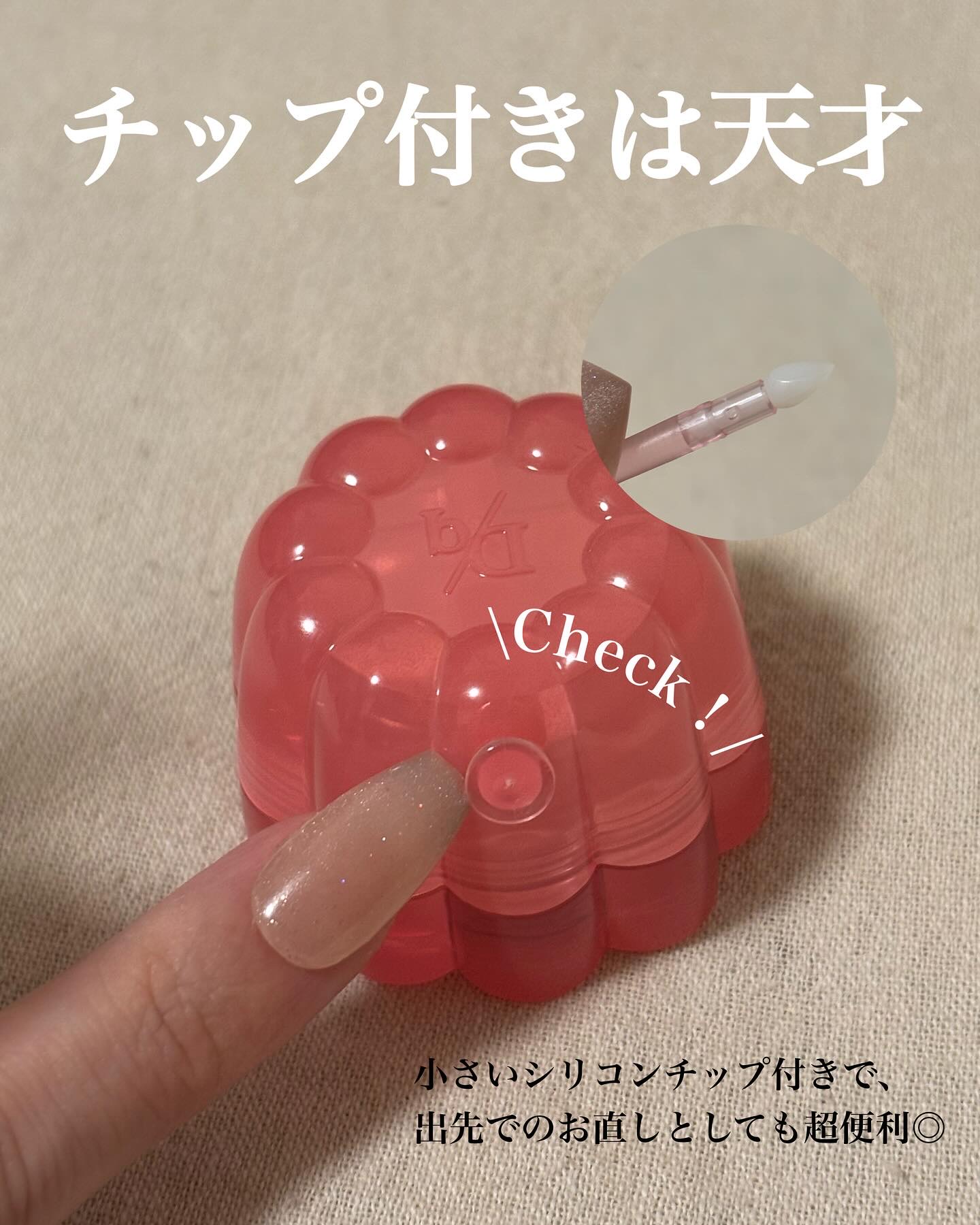 - プリンのような新感覚のチューイングテクスチャーに澄んだカラー感が加わったリップ&チーク。 ぷるぷるとしたゼリーのようなツヤ感が唇と頬にほのかに染まるウォーターリーグロウリップ&チーク。 甘いプリンのようにぷるぷるとした新感覚のチューイングテクスチャーで、べたつかず、なめらかに密着し唇にしっとりとした保湿感を与えます。 イエベ、ブルベの自分の肌トーンごとに使いやすい20色の多彩なカラーバリエーション、透明感のある澄んだカラーと鮮やかな発色、重ね塗りすればするほどあふれ出す、ほのかな水光リップへ導きます。 可愛いプリンのようなラブリーなパッケージで持ち運びが簡単!パッケージの中にはミニブラシが付いていて、衛生的に使えます。 ※ふんわりとしたゼリーテクスチャーの特徴により、固まりが生じることがありますので、薄くレイヤーを重ねて十分に塗り伸ばしてください。