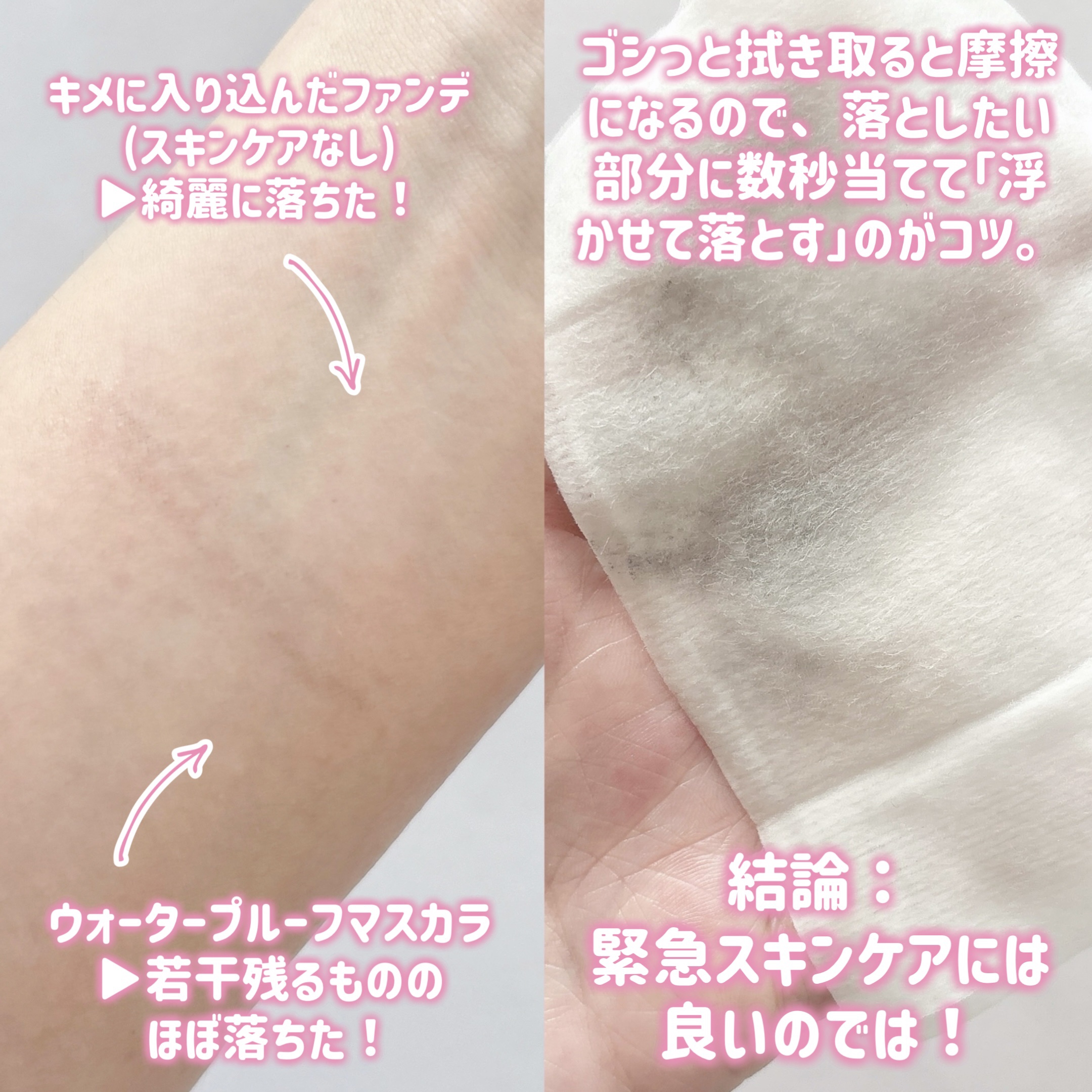 | 毛穴の凹みに入り込んだ汚れを 1枚でしっかり落とします。 拭き取ったメイクが肌に 戻りにくい仕様が良いですね。 | 詳細を見る | |