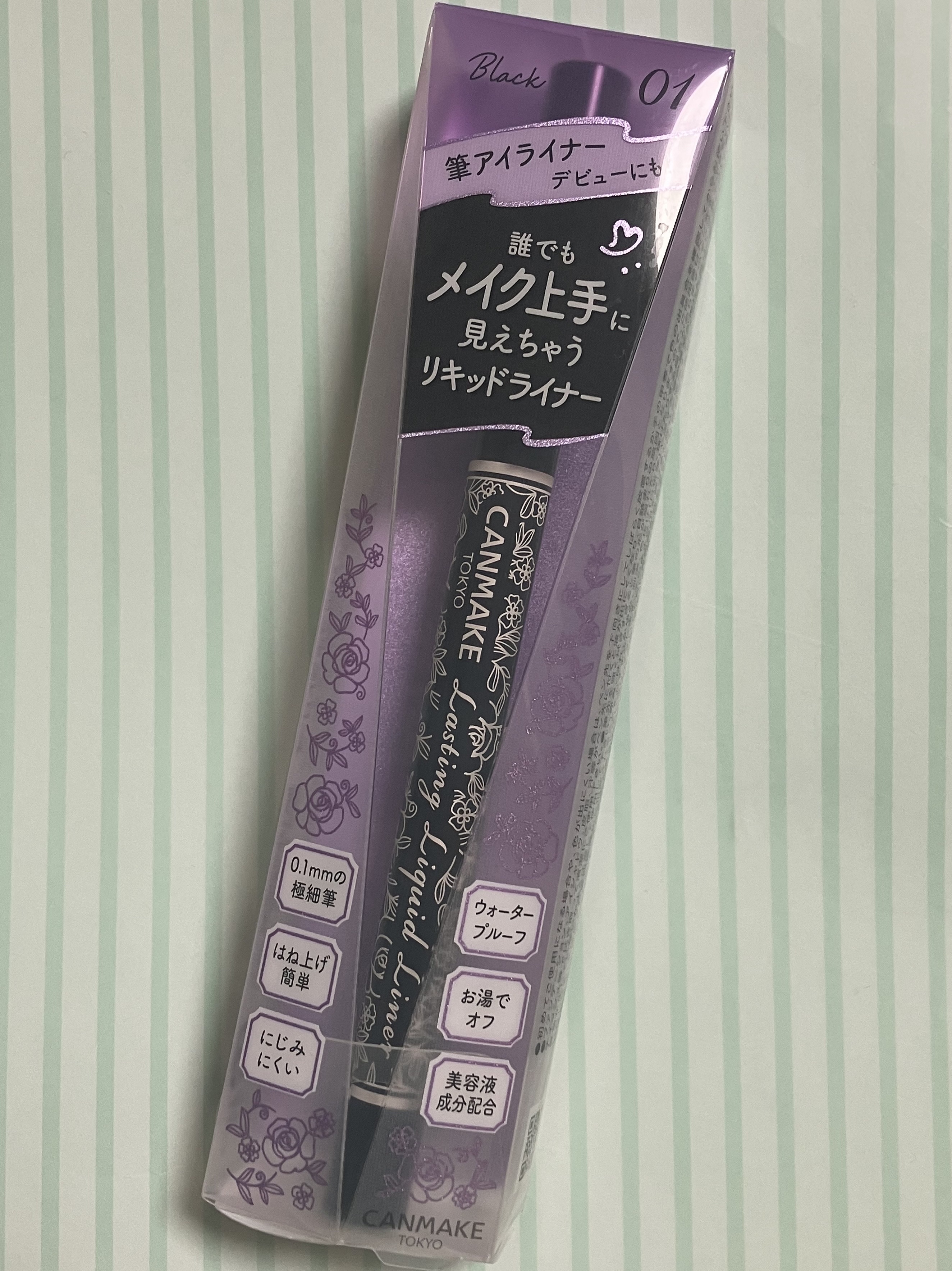 - ※2023年8月頃〜 01・02の容器デザイン印刷色が順次リニューアル。尚、これにかかる商品の返品・交換は承っておりません。 にじみ・くずれに強い速乾タイプの極細リキッドアイライナー 0.1mmのコシのある超極細筆を採用。 細いラインもブレずにきれいに描ける。 水・汗・涙・こすれに強いのに、お湯で簡単オフ! まつげのすき間埋めや目尻のハネ上げラインもお任せ