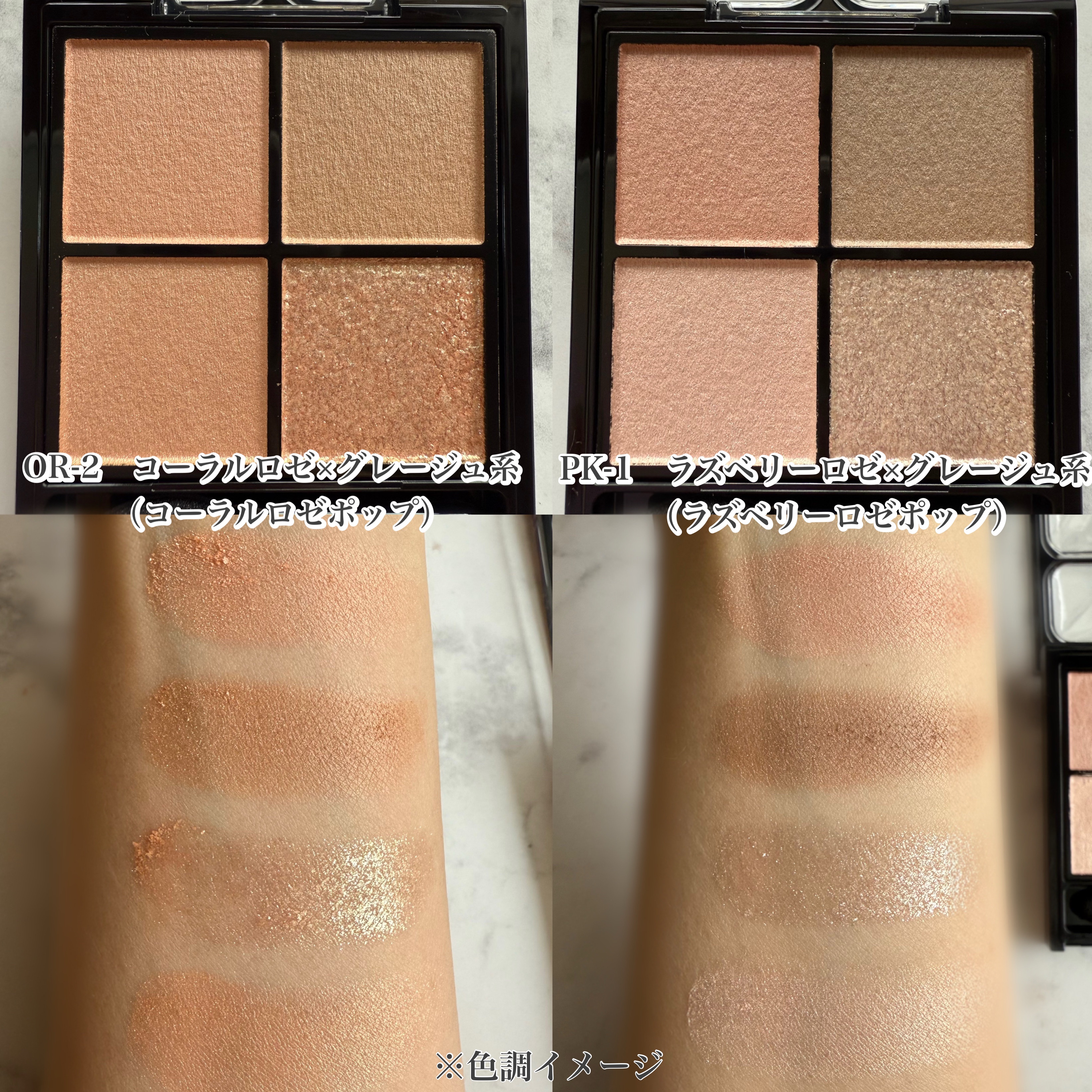 ピンクベージュを中心に、 ラメ&マットがバランス良く配色されていて、 締色が濃すぎないところも個人的にヒット。 意外としっかり色が乗ります。 まさに桃のようなうぶふわな印象🍑 ここまでピンクピンクしていてカルミンフリーなのは 嬉しいし、ありがたい♡