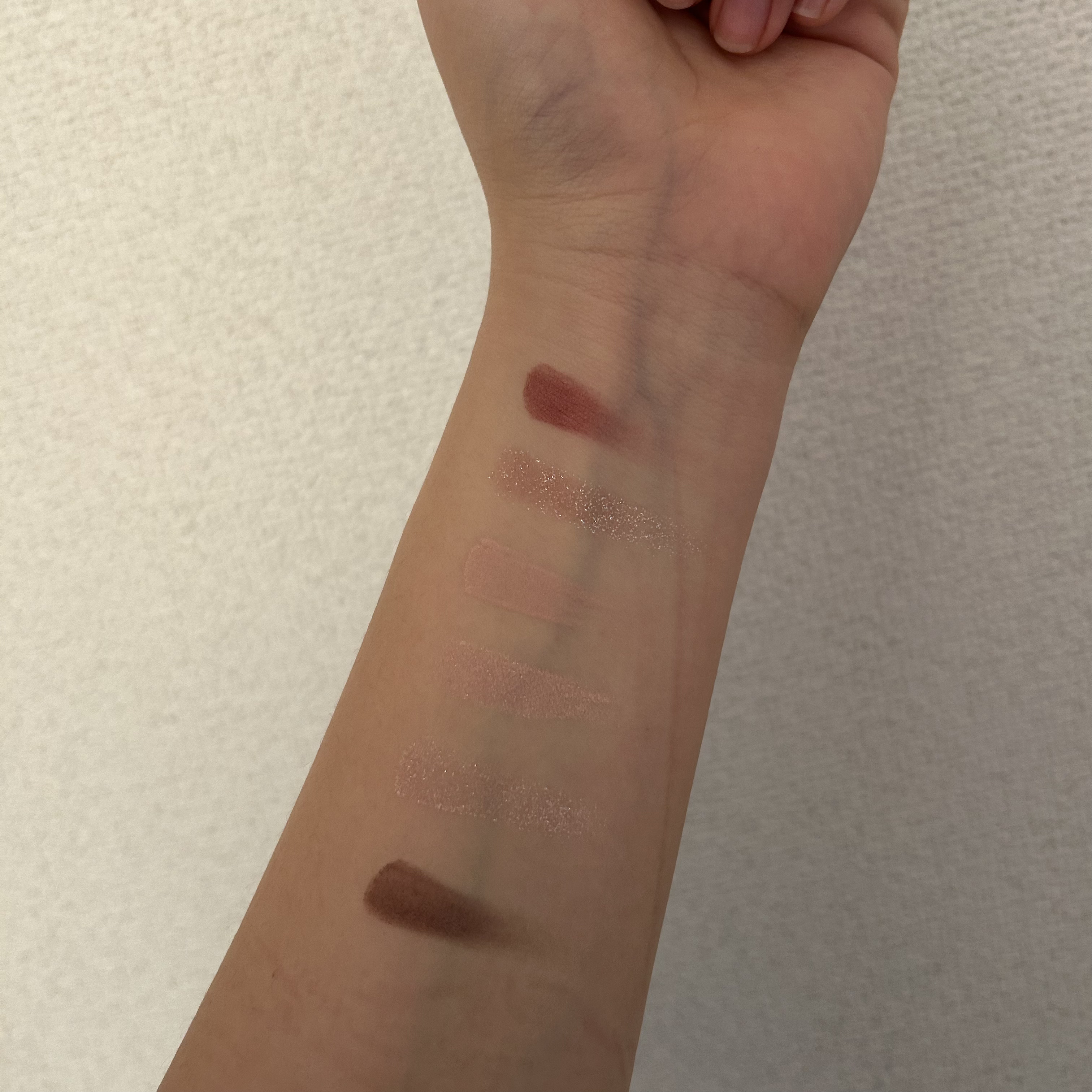 ハイライトとシェーディングが1つになったパレットで旅行の時にシェーディングとハイライトを両方持っていかなくていいのがすごく楽だなと思いました。 鏡も大きめですごく使いやすいです! ラメのハイライトもつやんつやんになります! かなり上位の濡れ感みたいなツヤでどタイプでした。 シェーディングが2色ついていますが、上の方はノーズシャドウで下の方は全体的なコントゥアとして使います。 濃い発色ではないのでメイク初心者の方も失敗しにくいのですごくいいと思います。