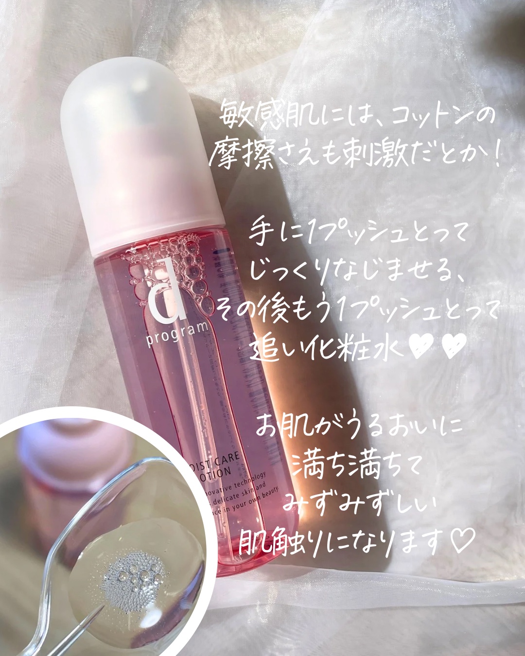 敏感肌にも嬉しい♪優しい使い心地の『dプログラム』で肌荒れ予防ケアをしよう♪ モイストケアは、うるおいで満たし肌環境を整える高機能土台化粧水🧴 とろみのあるテクスチャーでまろやかなつけ心地。肌馴染みもよくてもちっと仕上がります🫧