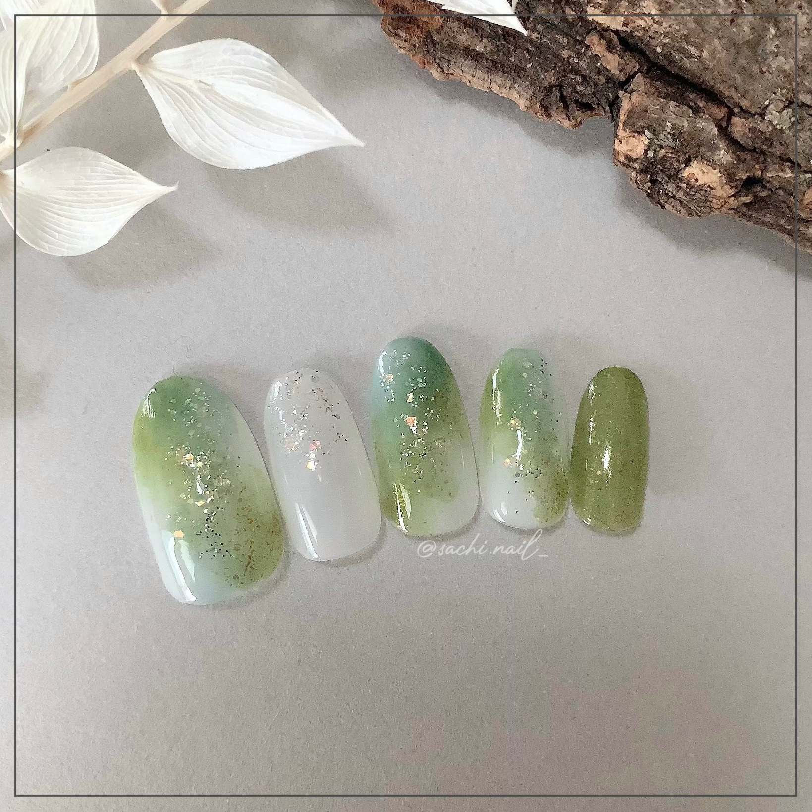 ワンカラーでも指ごとに色を変えるだけでオシャレに見えます💕 画像のようにゴールドラインとストーンを少し足すだけで華やかさがアップ🥰 何度かご紹介したことのあるスポンジで作るグラデーションです✨ スポンジを使うことで境目が綺麗に馴染んでくれます💕 アルミホイルの上でブラウンとトップコートを1:1くらいで混ぜたものを、トップコートのハケに取って3箇所に塗るだけ👌 事前に混ぜたものを塗ることで、爪の上でぼかすより簡単に出来ます💕 ベースカラーが乾く前に点置きしてぼかすことで綺麗にぼかせます✨ スピードが大事なので、使うポリッシュのキャップは全て開けておきましょう😊 天然石のラインはガタガタの方がより天然石っぽく見えるので、ラインを描くのが苦手な方でも大丈夫🙆♀️ 難しそうに見えて、やってみると意外と簡単に出来ます♡