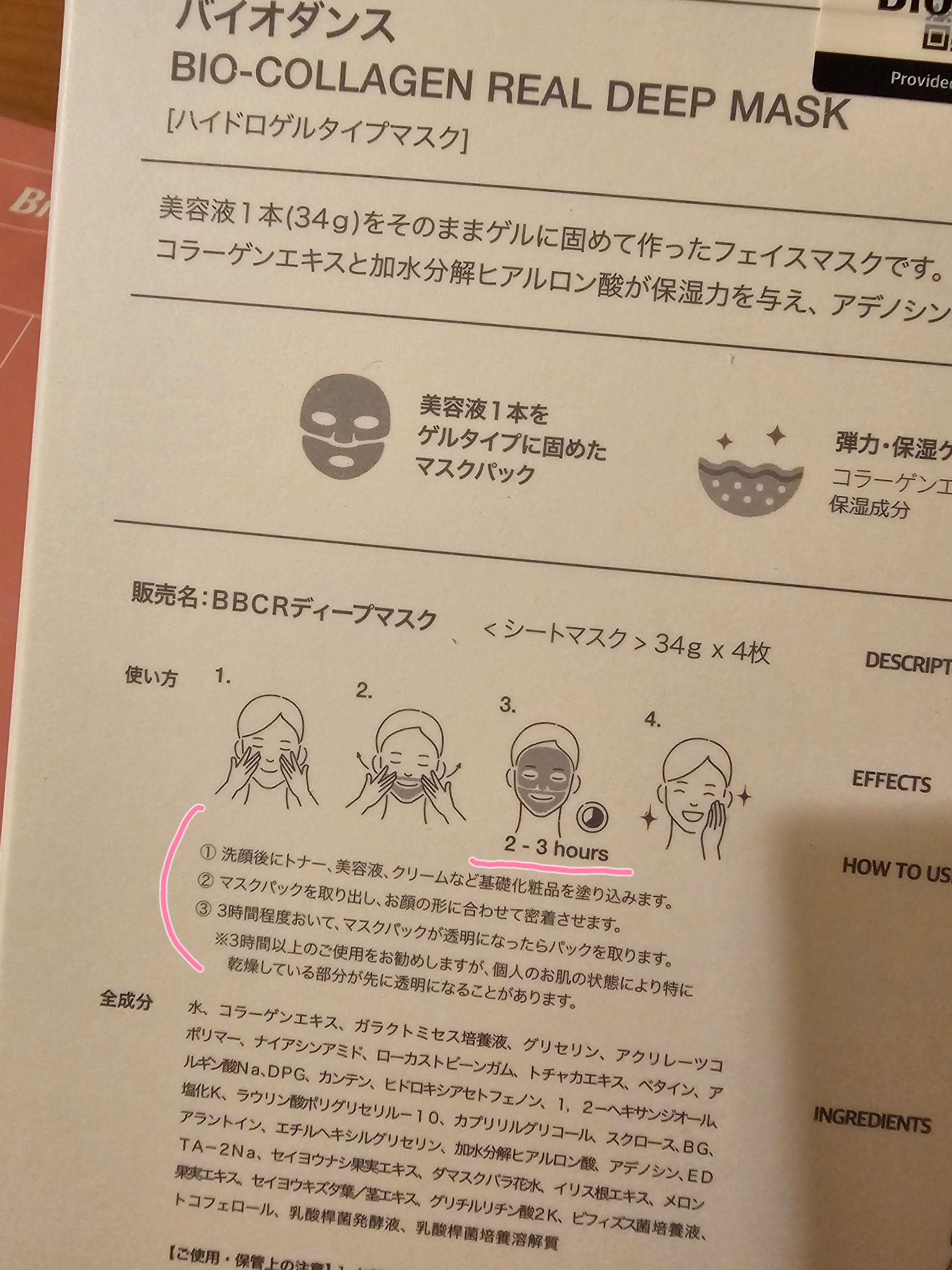 - <1枚> 精製水、コラーゲン抽出物、ガラクトミセス発酵濾過物、グリセリン、アクリレーツコポリマー、ナイアシンアミド、キャロップガム、アイリッシュモス抽出物、ベタイン、アルギン酸、ダイプロピレングリコー、カンテン、ヒドロキシアセトフェノン、1,2-ヘキサンジオール、塩化カリウム、ラウリン酸ポリグリセリル-10、カプリリルグリコール、スクロース、ブチレングリコール、アラントイン、エチルヘキシルグリセリン、ハイドロライズドハイアロロニックシード、アデノシン、ダイソジウムイディティエイ、セイヨウナシ果実抽出物、ダマスクバラ抽出液、イリス根抽出物、メロン抽出物、西洋松岳葉/茎抽出物、ジポタシウムグリシリゼート、ビフィーダ発酵濾過物、トコフェロール、ラクトバチルス桿菌発酵液、ラクトバチルス桿菌溶解質液 <4個入り> カプリリルグリコール、スクロース、エチルヘキシルグリセリン、ラウリン酸ポリグリセリル-10、ジポタシウムグリシリゼート、精製水、コラーゲン抽出物、ガラクトミセス発酵濾過物、グリセリン、アクリレーツコポリマー、ナイアシンアミド、キャロップガム、アイリッシュモス抽出物、ベタイン、アルギン酸、ダイプロピレングリコー、カンテン、ヒドロキシアセトフェノン、1,2-ヘキサンジオール、塩化カリウム、ブチレングリコール、アラントイン、ハイドロライズドハイアロロニックシード、アデノシン、ダイソジウムイディティエイ、セイヨウナシ果実抽出物、ダマスクバラ抽出液、イリス根抽出物、メロン抽出物、西洋松岳葉/茎抽出物、ビフィーダ発酵濾過物、トコフェロール、ラクトバチルス桿菌発酵液、ラクトバチルス桿菌溶解質液