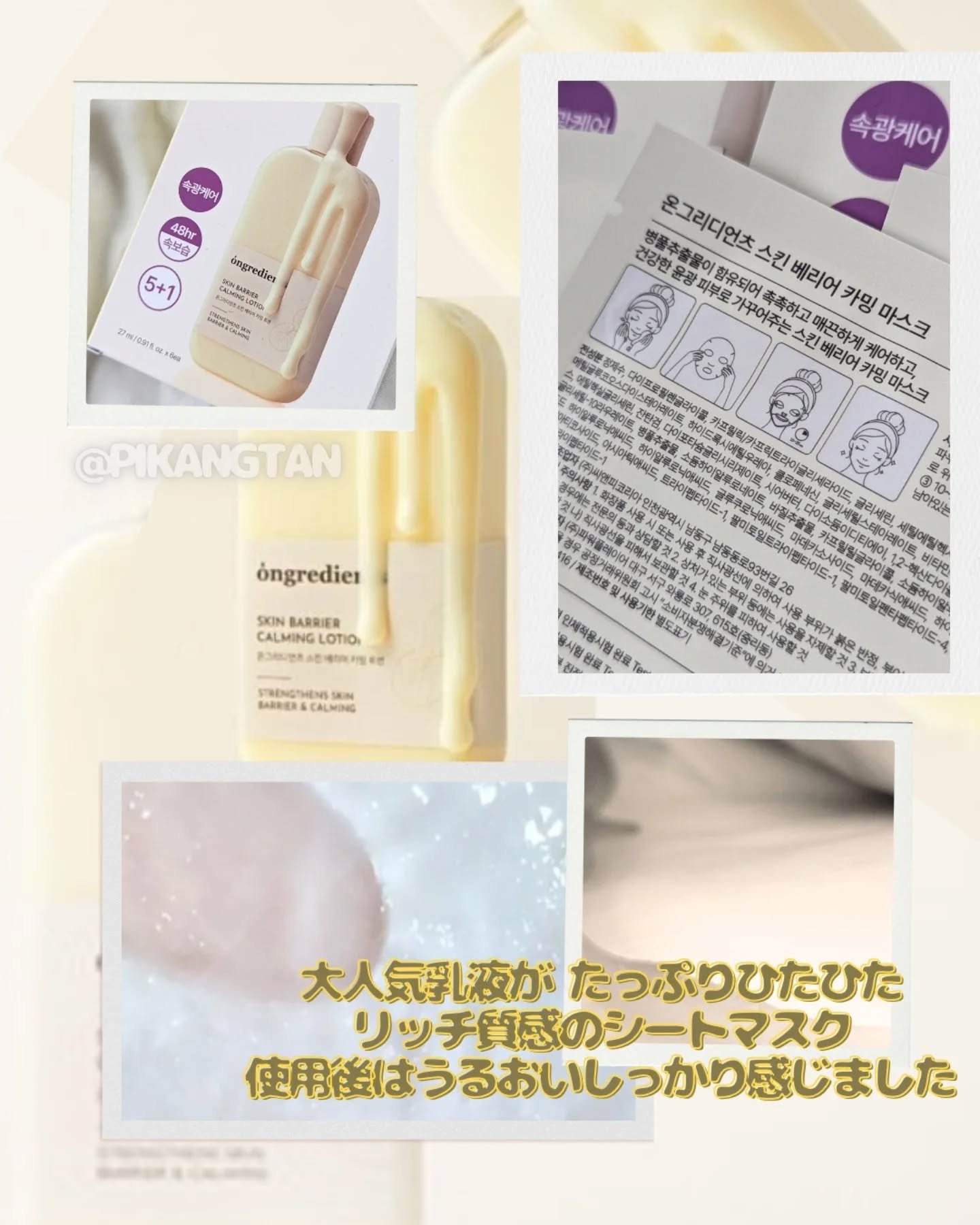 Ongredientsさまからいただきました❤︎Ongredientsスキンバリアカーミングマスク48時間保湿キープしてくれるシートマスク💛あの大人気の乳液から良いところを取ったシートマスクでこれは人気出る予感🥹乳液がこのシートマスク1枚に込...