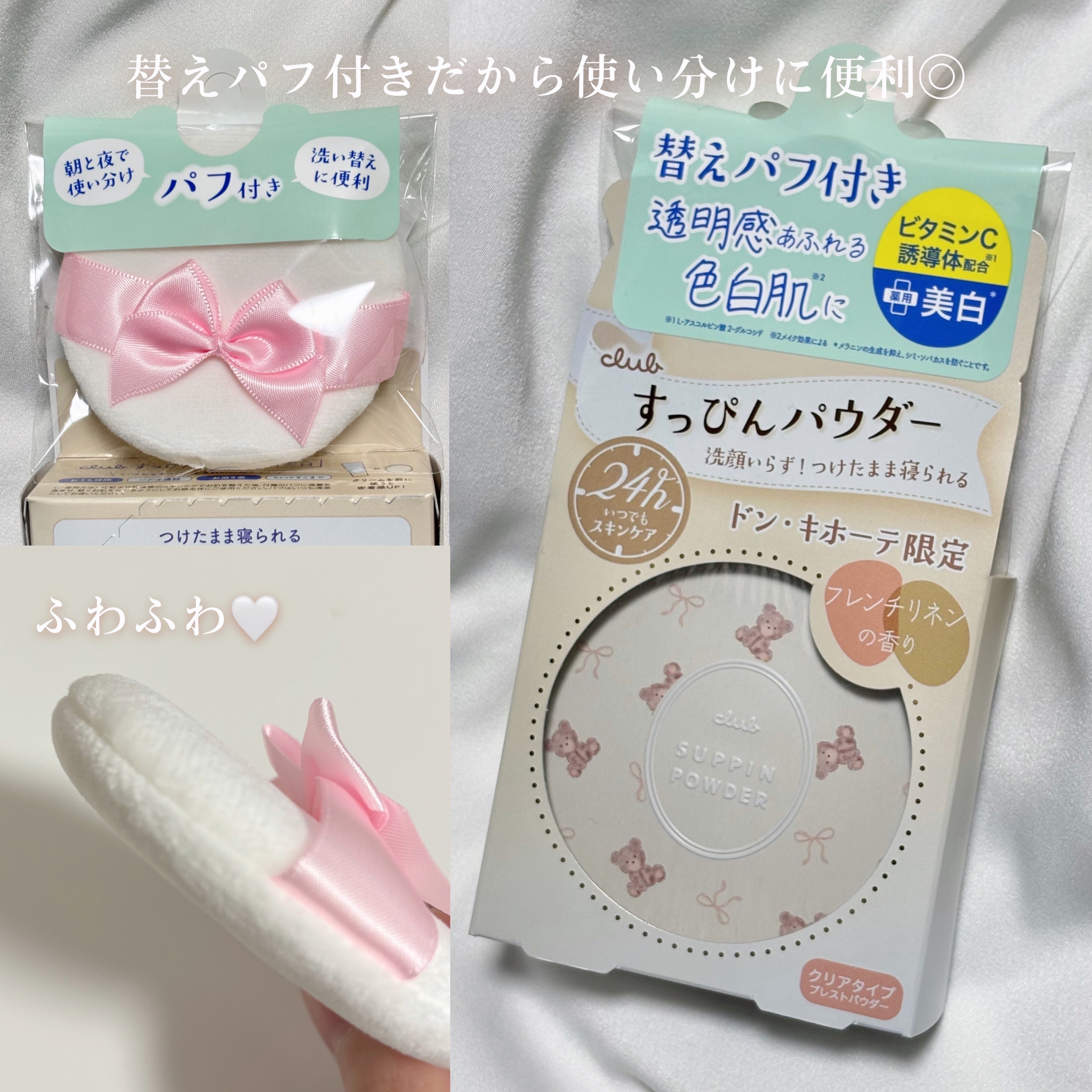 ✧club✧すっぴんパウダーからドン・キホーテ限定が登場🧸✨色白*なトーンアップ感が凄くナチュラルで可愛いよ〜!薬用美白*1スキンケアパウダーだから、洗顔不要で寝れちゃうのがすごい🌃💤スキンケアの後のベタつきが気になる時に使うのも、パウダーが...