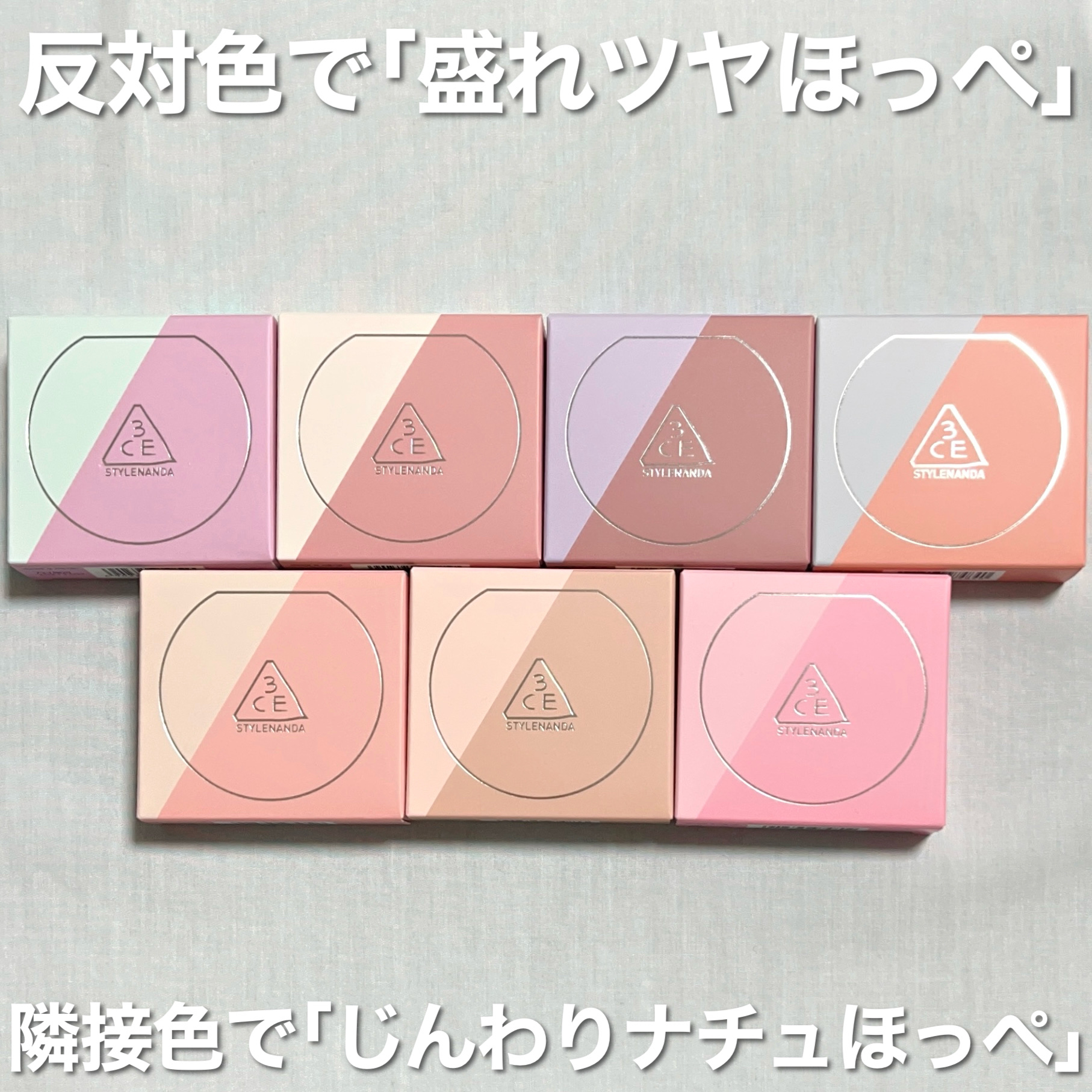 - ソウル発のクリエイティブメイクアップブランド「3CE」から、計算されたカラーコンビネーションで、自然な血色感とツヤを叶える「ブラッシュライター」全7色が登場。2025年3月4日(火)より店頭、3月14日(金)よりオンラインショップにて発売開始いたします。 ▮「盛れツヤほっぺ」と「じんわりナチュほっぺ」を演出 3CEならではのカラーへのこだわりを詰め込んだ新チーク&ハイライト「ブラッシュライター」。 色相環に基づいた絶妙な配色で、ハイライトとチークのベストバランスを実現します。 ・ コントラストカラー(全4色)で「盛れツヤほっぺ」: 色相環で反対色となるハイライトとチークを組み合わせることで、互いの色を引き立て合い、華やかな印象に。 透明感のあるハイライトが、血色感あふれるチークをより一層際立たせます。 ・ グラデーションカラー(全3色)で「じんわりナチュほっぺ」: 色相環で隣り合う色のハイライトとチークは、肌に自然に溶け込み、まるで“元から美人”のようなナチュラルな血色とツヤを与えます。