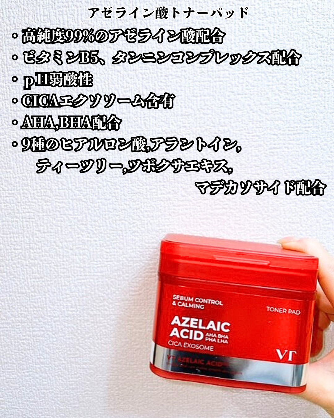 メイクがしっかりオフ出来たのはもちろん、肌悩みの赤みが薄くなって肌キメが整った感じでビックリ! VTの史上最高の自信作なだけある♡ 洗い上がりも突っ張らなかったのも良かった◎ アゼライン酸トナーパッドも1枚で皮脂や毛穴ケアが出来てさっぱり使えるクレンジングオイルとの相性もピッタリ♡